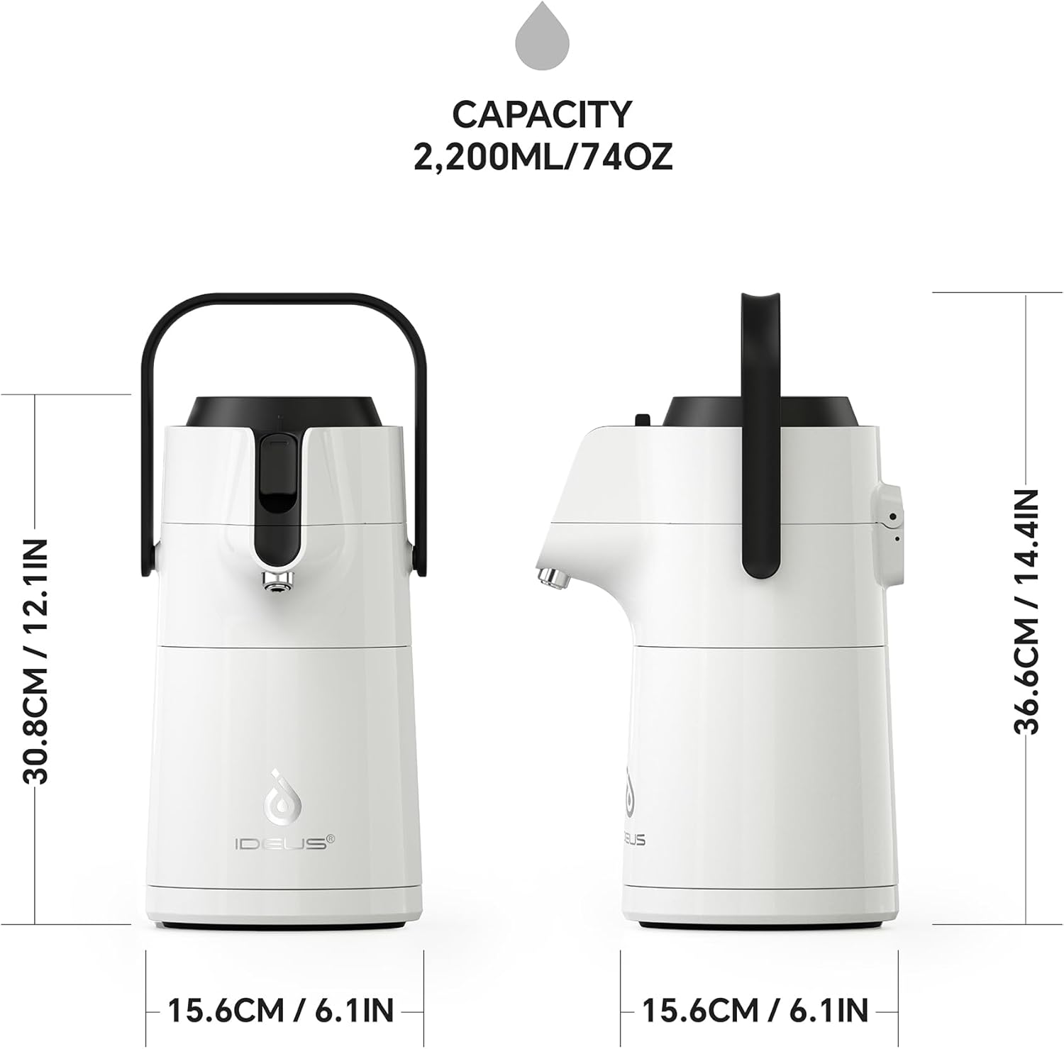 IDEUS Thermal Coffee Carafe 74oz (2,200ml), Stainless Steel Double Wall Insulated Vacuum Flask, Water Jug Coffee Server and Beverage Dispenser, Heat and Cold Retention (White, 74oz (2,200ml))