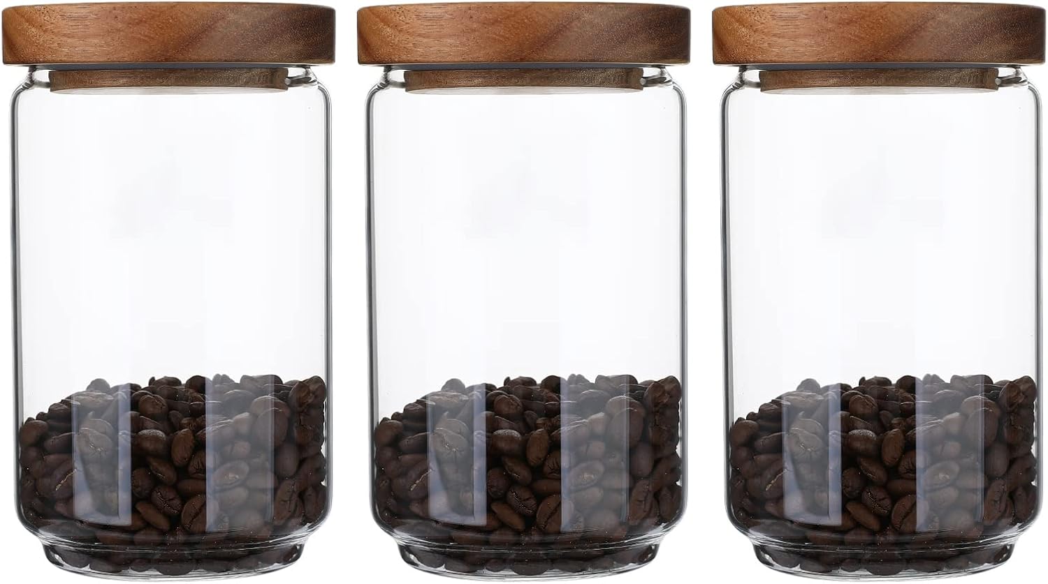 Glass Storage Jars Set of 3, 25 OZ HIgh Borosilicate Glass Containers Kitchen Food Canisters with Acacia Wood Lids for Coffee Beans/Sugar/Tea/Nuts