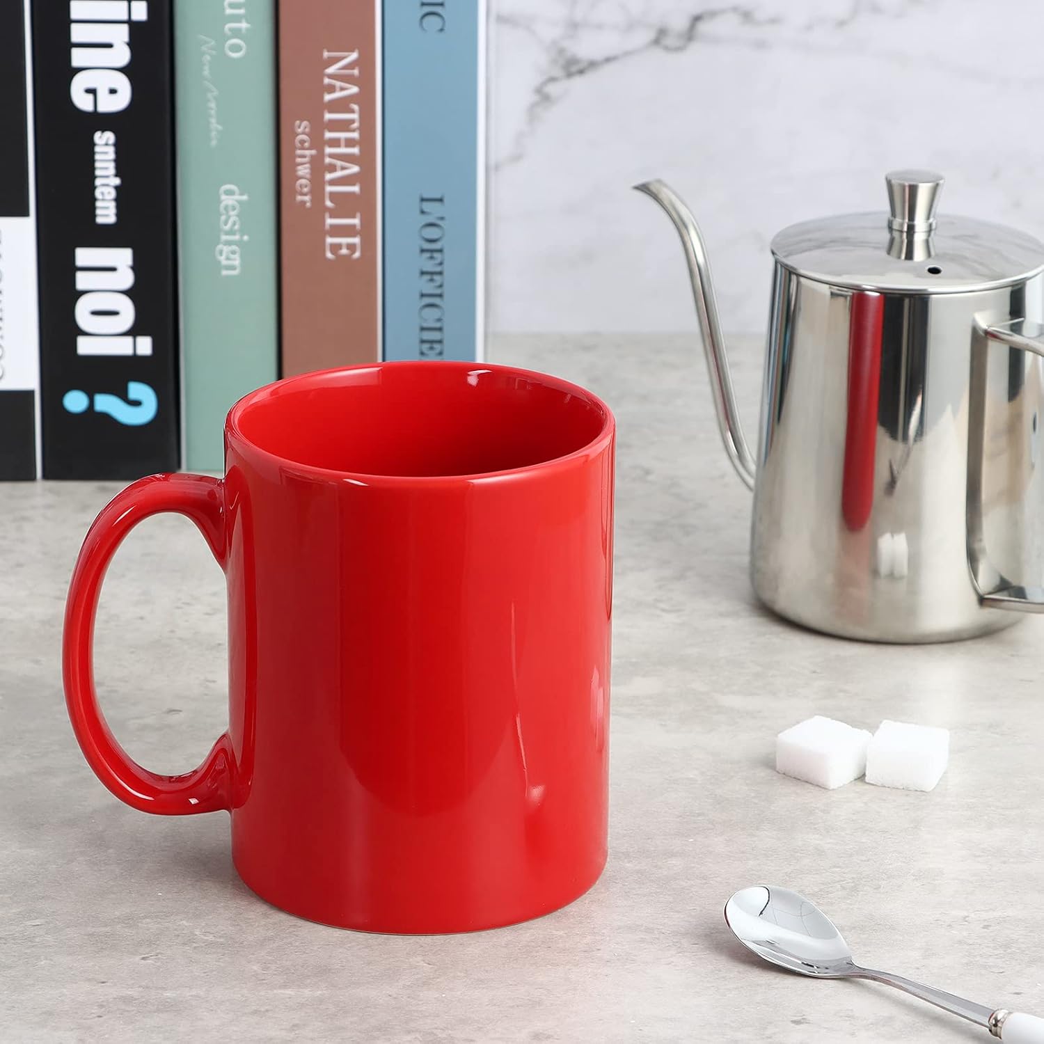 Large Coffee Mugs, 22 OZ(650ml) Extra Coffee Mug Set of 2, Smooth Ceramic Boss Cups, Big Capacity and Large Handle, for Dad Men, Red