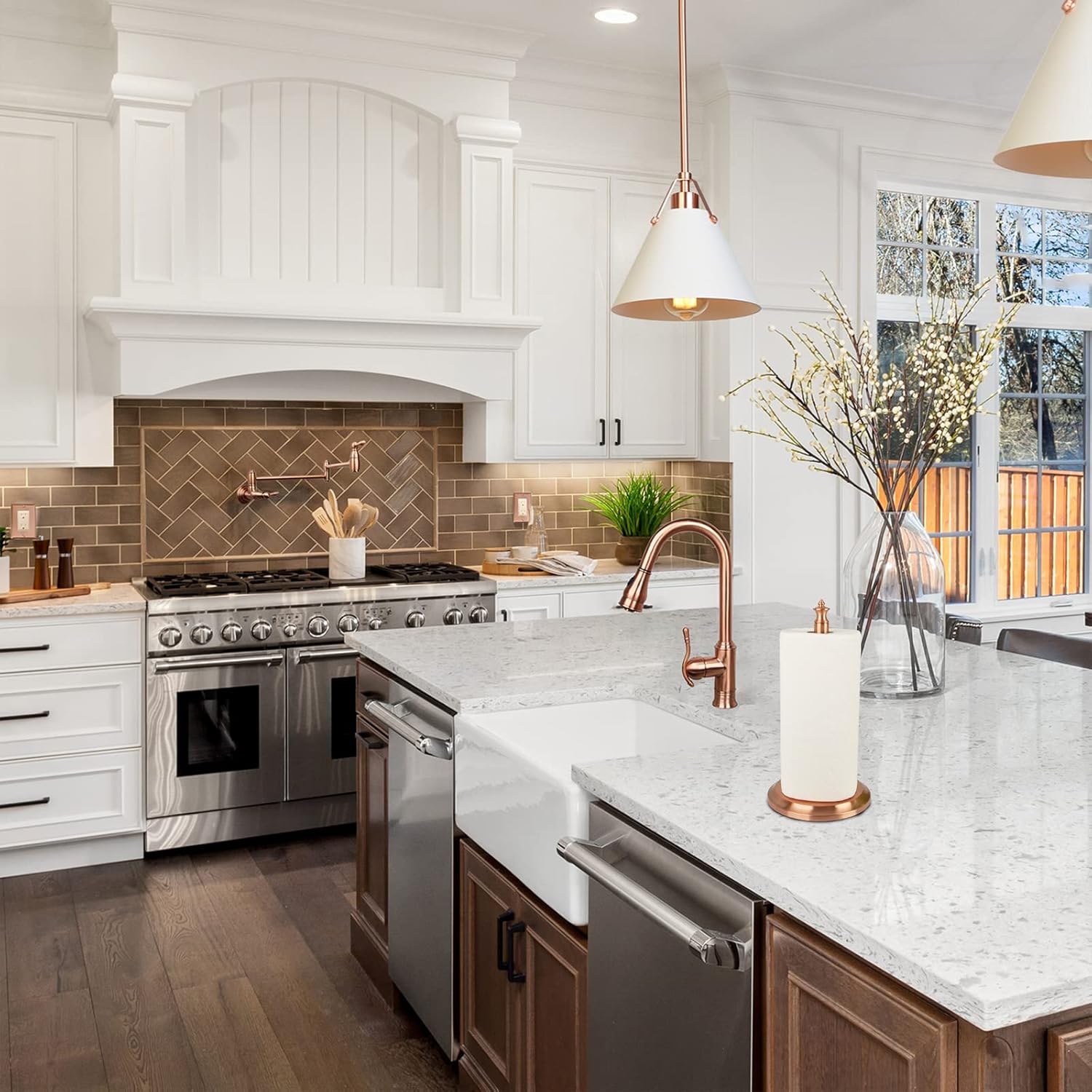 - MODERN & ELEGANT: Designed by Akicon is a classical stand up paper towel holder with smooth, elegant lines and a modern copper finish that is sure to enhance your kitchen décor.