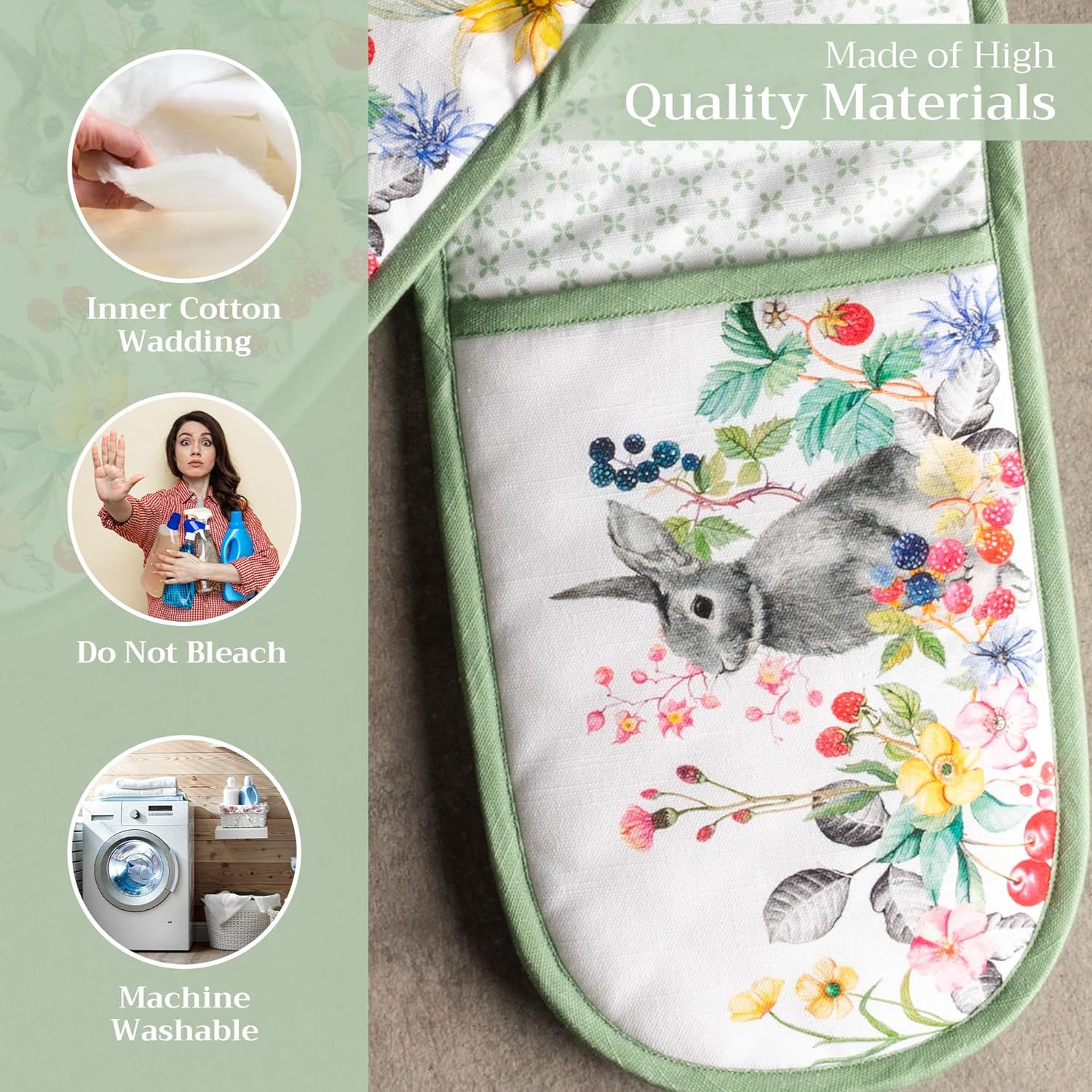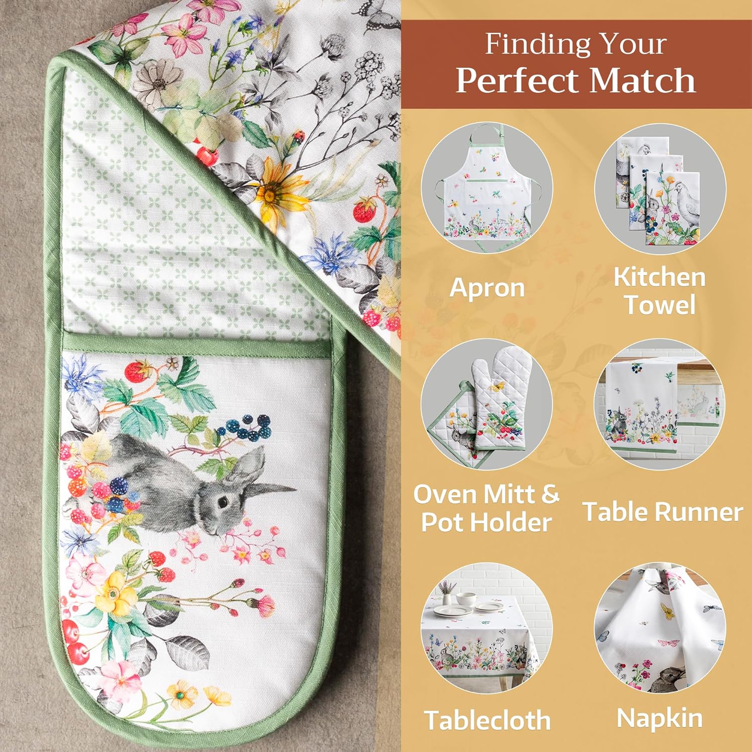 Maison d' Hermine Double Oven Mitts 100% Cotton 7"x35" Double Oven Mitt Heat Resistant BBQ Cooking Gloves with Loop, Baking, Grilling, Home, Kitchen, Handling Hot Pans Spring Summer (Printemps)