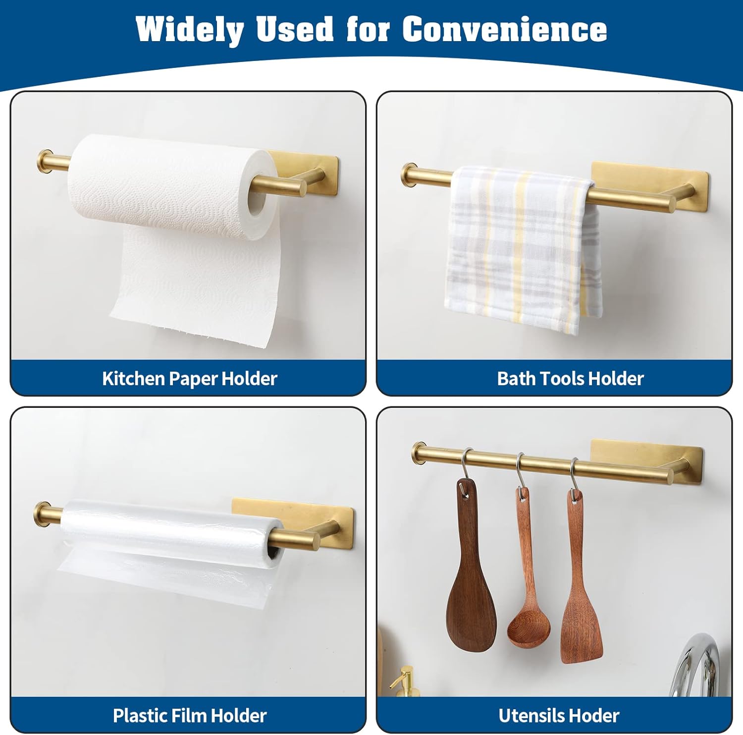 theaoo Gold Paper Towel Holder for Kitchen, Adhesive Under Cabinet Paper Towel Roll Rack for Bathroom Towel, Wall Mounted Matte Black, SUS304 Stainless Steel