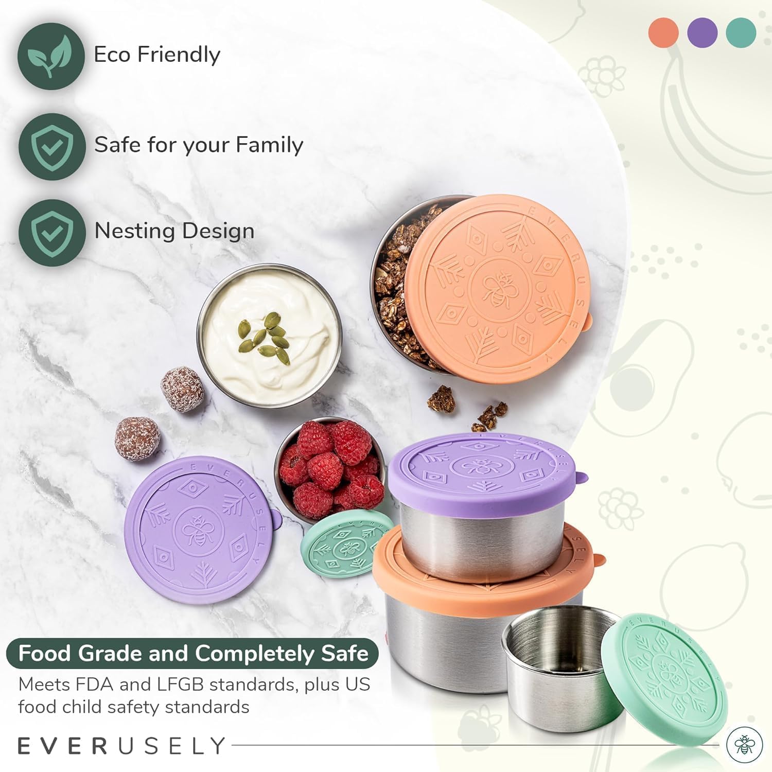 Everusely - Stainless Steel Food Containers - 3 Pack, Bright - Lunch Box - Snack Containers for Office, Home Food Storage - Leakproof with Silicone Lids - Dishwasher & Freezer Safe