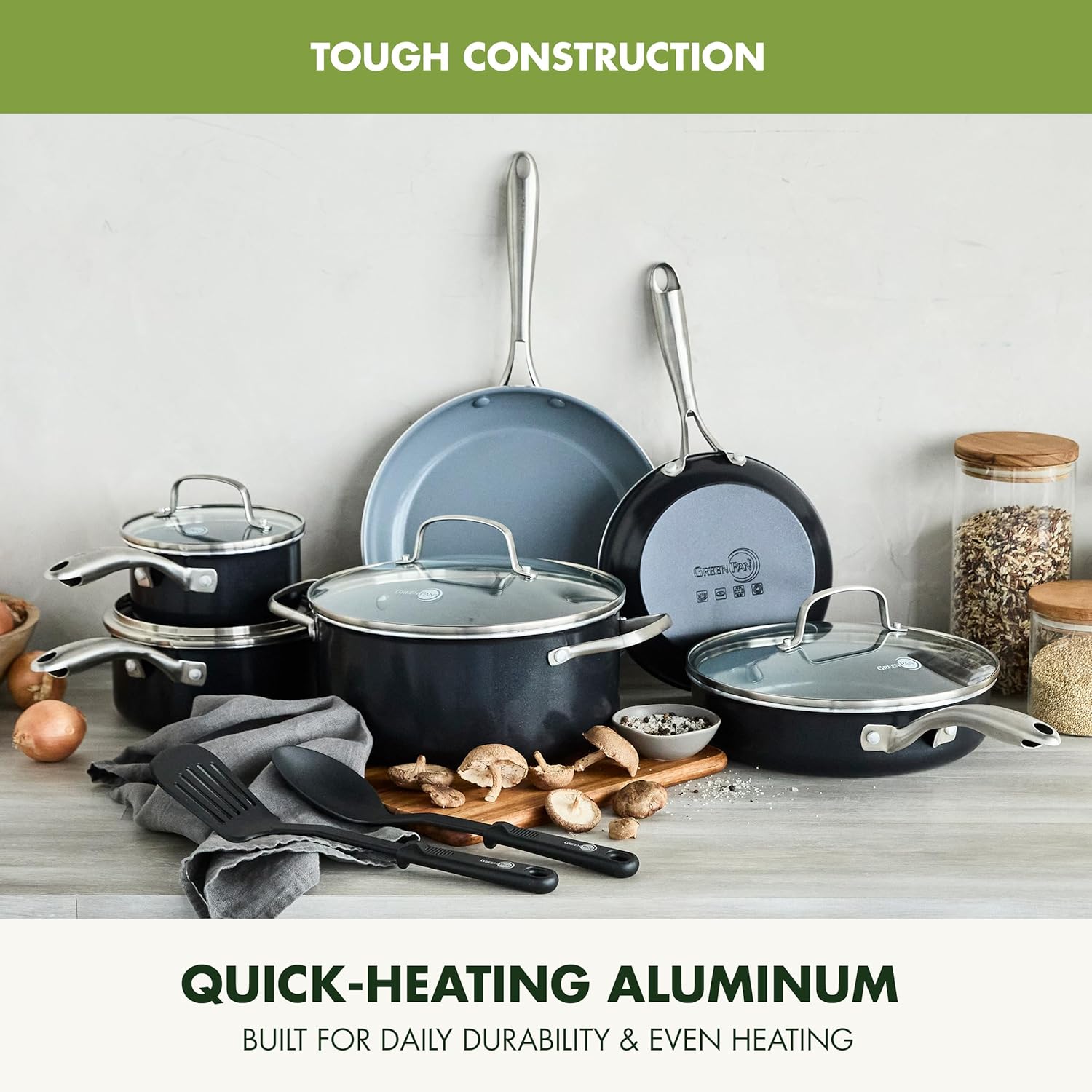 - TOXIN-FREE: GreenPan's Thermolon healthy ceramic nonstick coating is free of PFAS, PFOA, lead, and cadmium