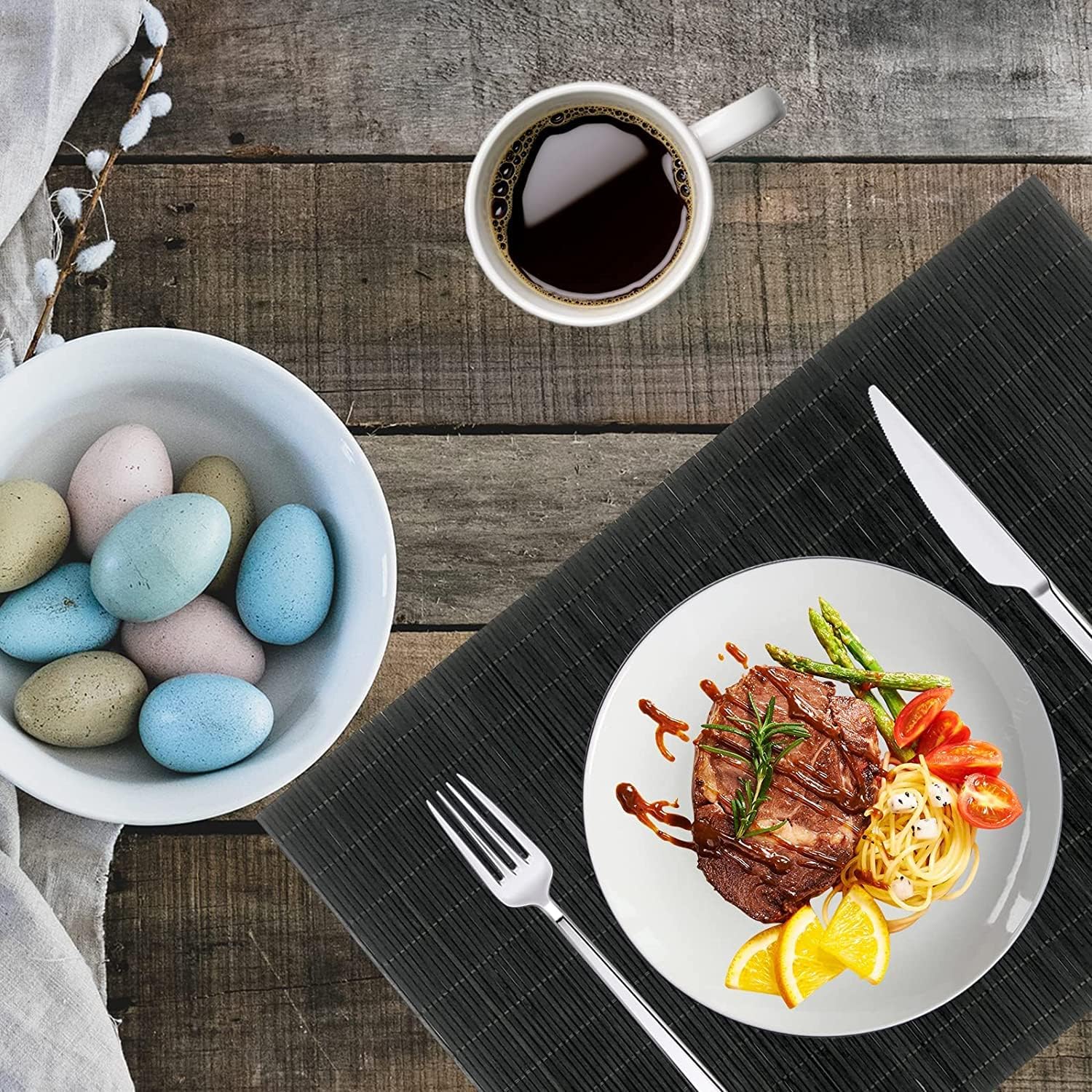 - 【APPLICABLE SCENE】:Perfect for daily use.Good match with dark wood table, glass table, white dining table, wooden farmhouse table, brown dining table.Woudeful decoration for your living room, BBQ,patio,Office,holiday dinner, outside parties and kitchen.