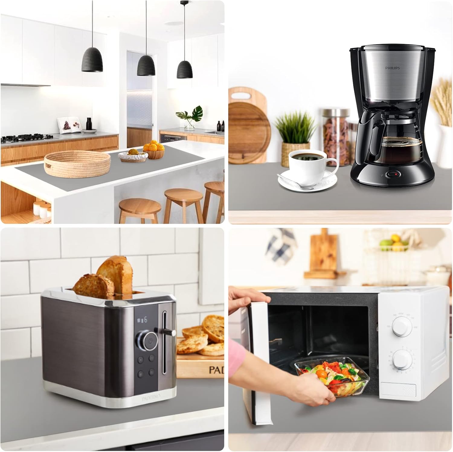 - 【A perfect countertop protector 】The counter protector protect the kitchen countertops and other surfaces against scratches, spills, grease, heat, etc. Heat resistant between -40°F and 446°F, making it safe for placing under the air fryer, microwave, induction stove, toaster oven, coffee maker, etc.