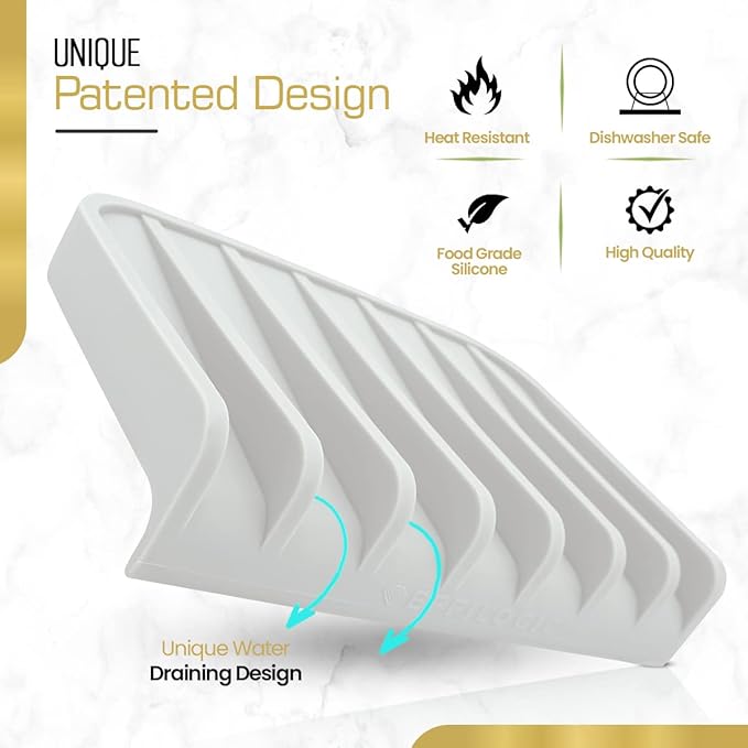 - ✅ UNIQUE WATER DRAINING DESIGN: Effilogic kitchen sink sponge holder is unique because It has a patent design with a lip and slanted floor. This draining design allows water to drain from utensils, sponges and any kitchen sink accessories automatically without collecting water. Effilogic mat protects your kitchen counter top. Great alternative for water collecting Kitchen Sink Caddy! ❗Does NOT include brush or accessories.❗