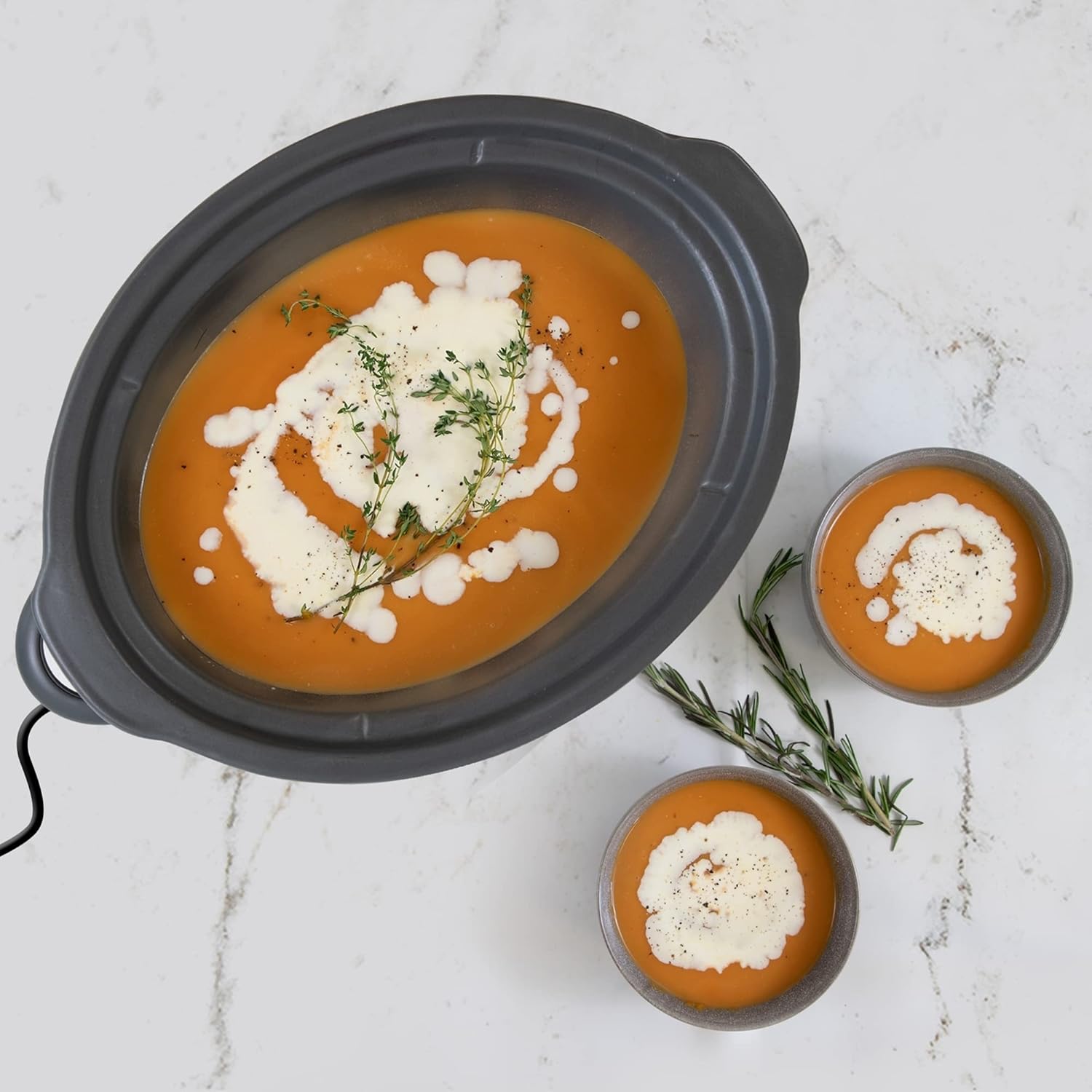 - SPACIOUS 5-QT CAPACITY - With its generous 5-quart capacity and oval shape, this slow cooker can comfortably fit a 5 lb chicken or 3 lb roast for a hearty family meal. This ample size is perfect for preparing meals for small families or for batch cooking, allowing you to cook enough food for multiple servings.
