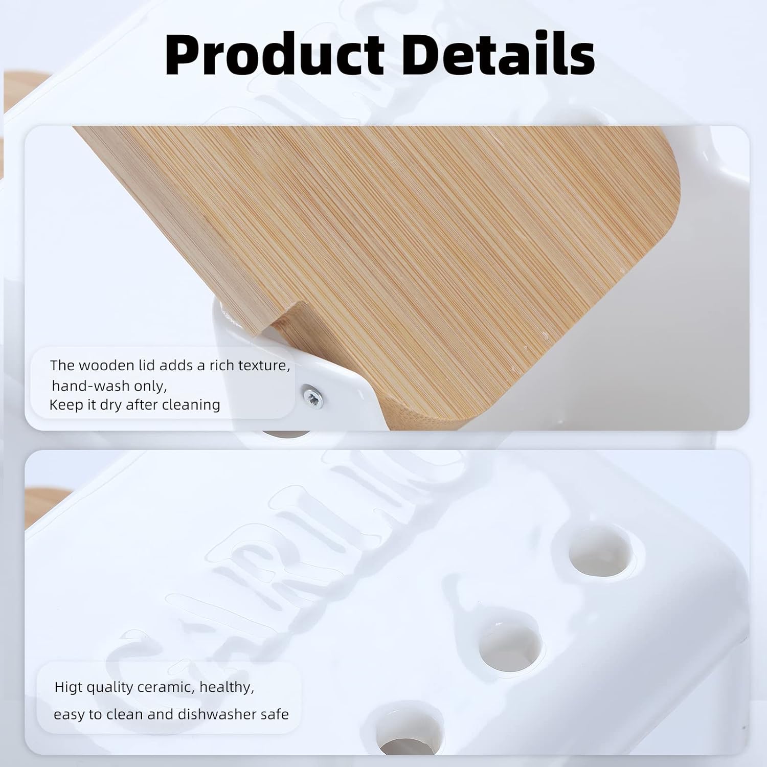 - FASHIONABLE APPEARANCE : There are 4 holes on the porcelain, which can keep the garlic ventilated inside