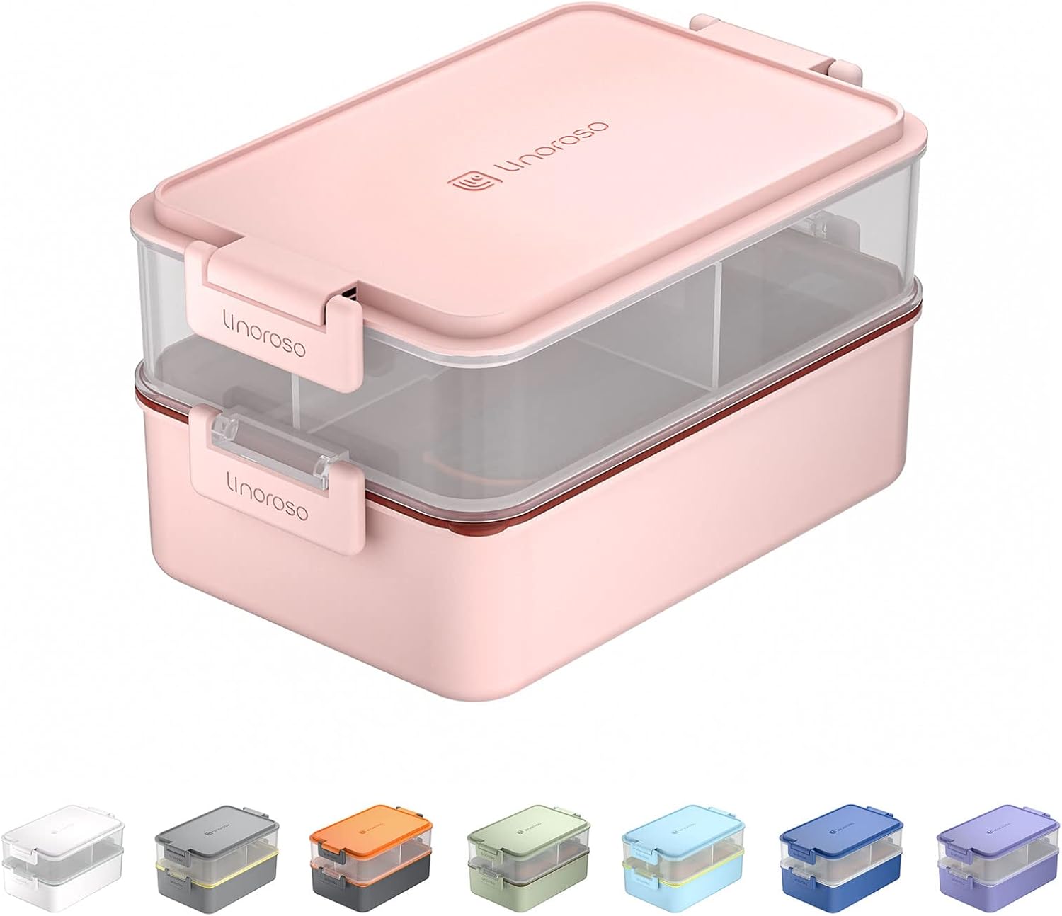 linoroso Stackable Bento Box Adult Lunch Box | Meet All You On-the-Go Needs for Food, Salad and Snack Box, Premium Bento Lunch Box for Adults Include Utensil Set, Dressing Containers - Frozen Berry