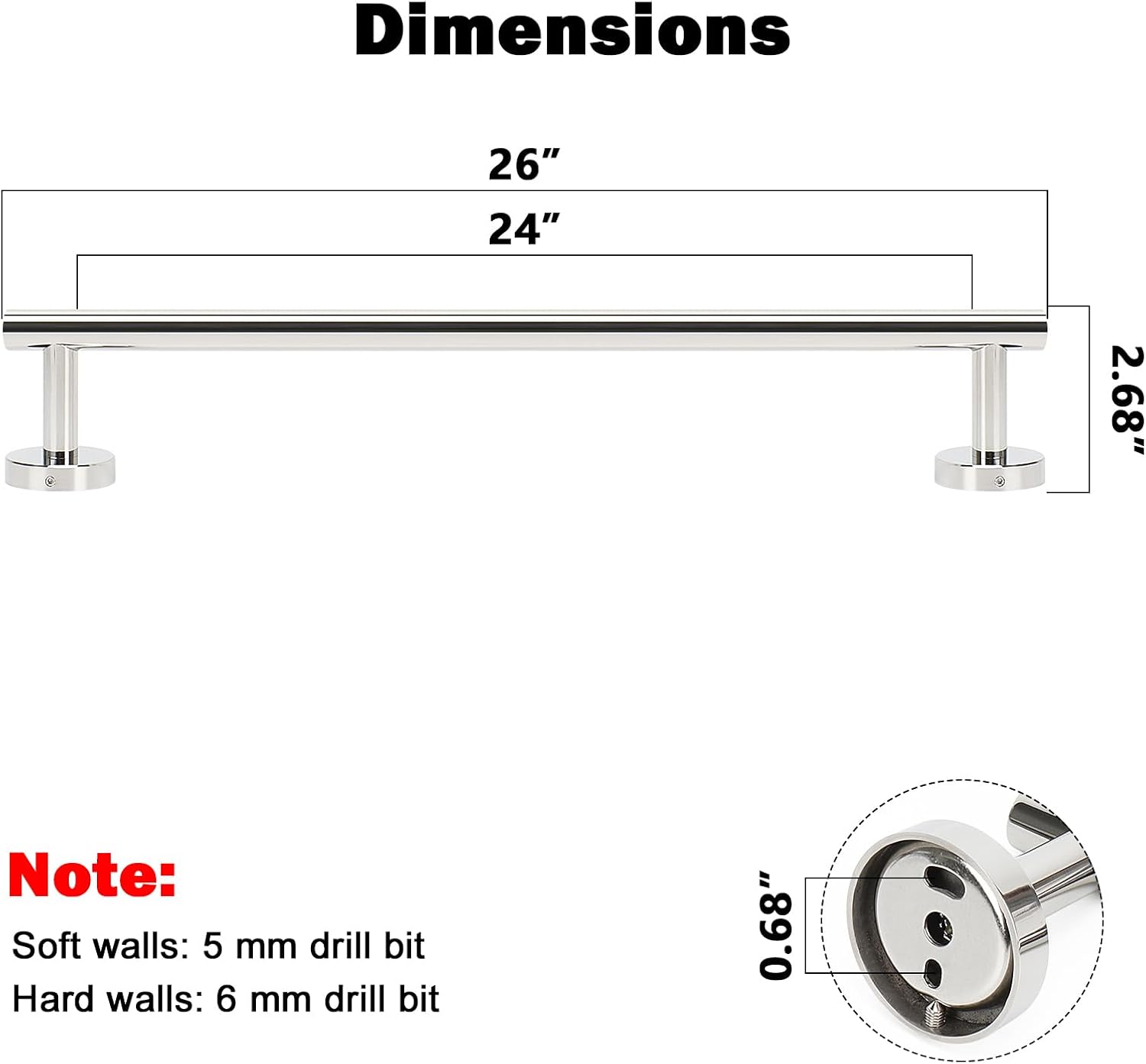 NearMoon Bath Towel Bar, Bath Accessories Thicken Stainless Steel Shower Towel Rack for Bathroom, Towel Holder Wall Mounted (1 Pack, Chrome Finish, 26 Inch)