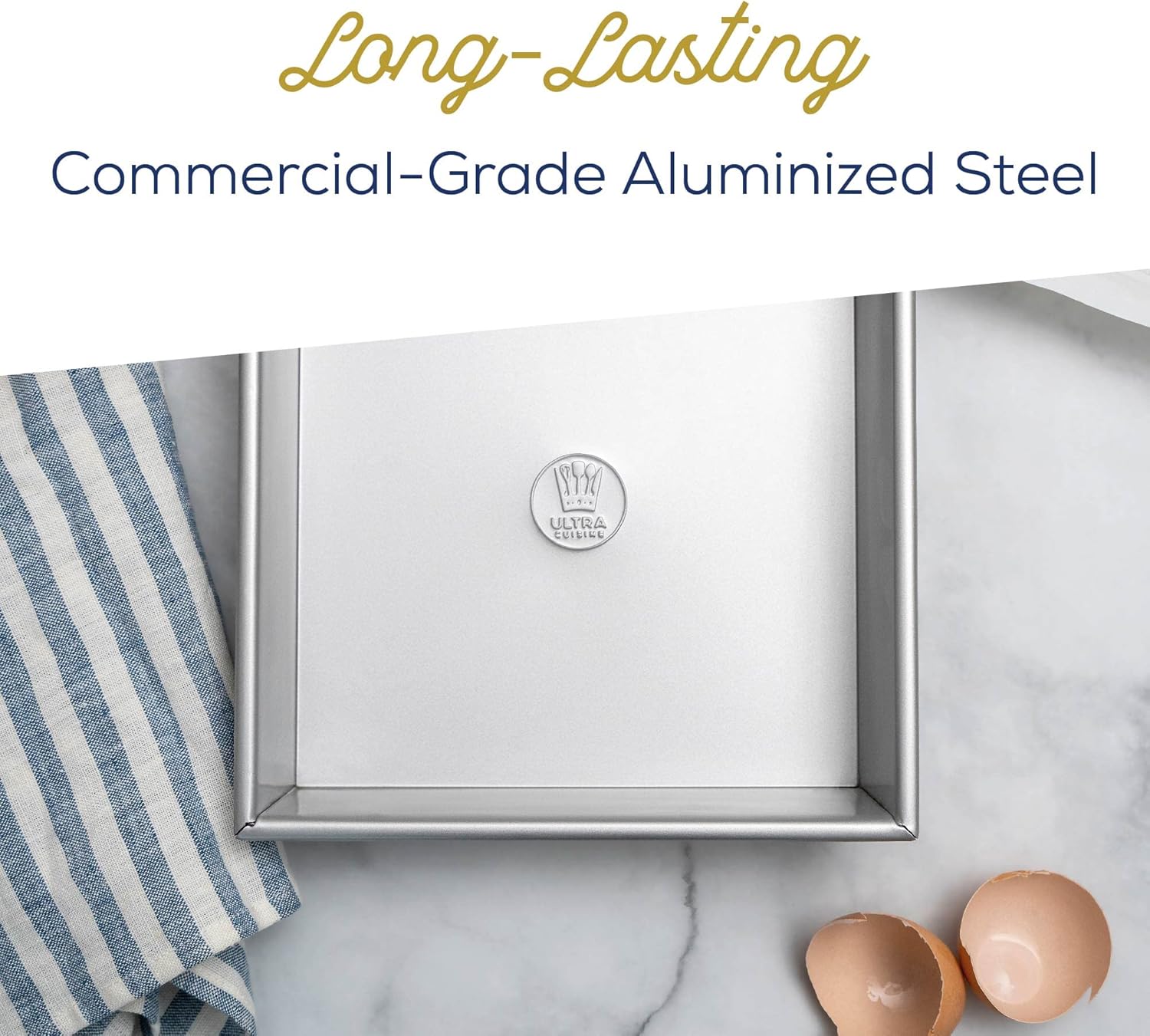 Ultra Cuisine Square Cake Pan - Non-Stick Steel Stick - Easy Release - Durable Baking Tool - Ideal for Brownies - Loaves - Aluminized Steel - Square Baking Pan - Excellent Brownie Pan - 7x7 Cake Pan