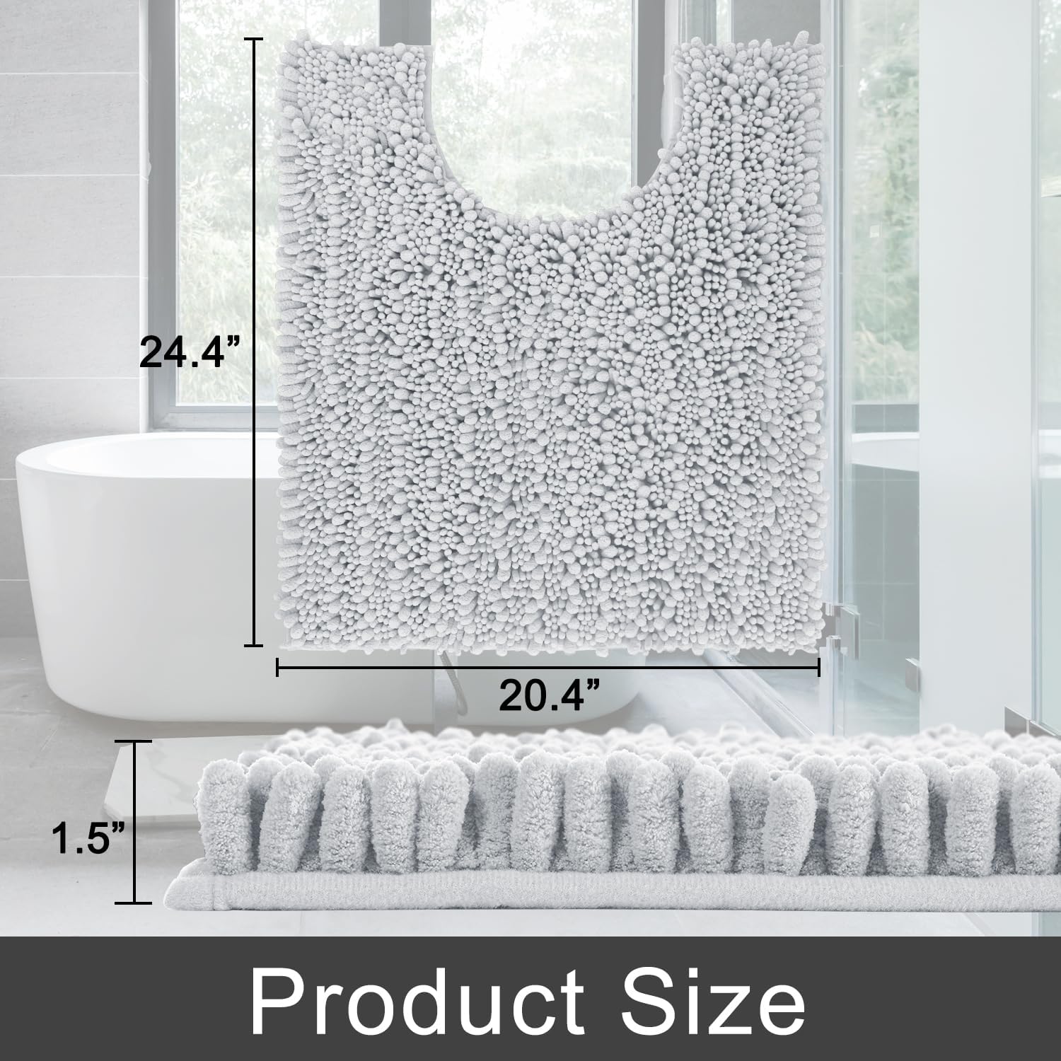 Yimobra Toilet Rug U Shaped Washable 24x20 Inch - Ultra Soft Absorbent Chenille Bath Rugs for Toilet, Quick Dry & Machine Washable, Non Slip Contour Bathroom Mat, Silver