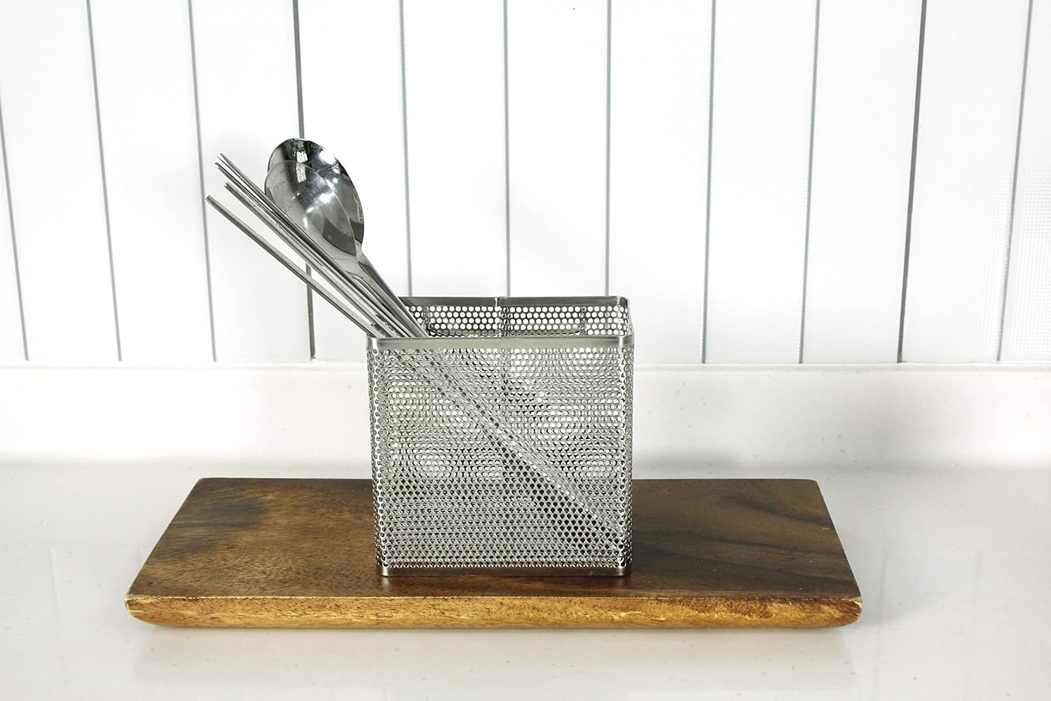 - Easy To Clean: This stainless steel silverware organizer keeps the kitchen sink and counters less cluttered, and the kitchen utensil drainer is easy to clean. This basket with holes in bottom can be rinsed with running soapy water, and ready to used again after drying.