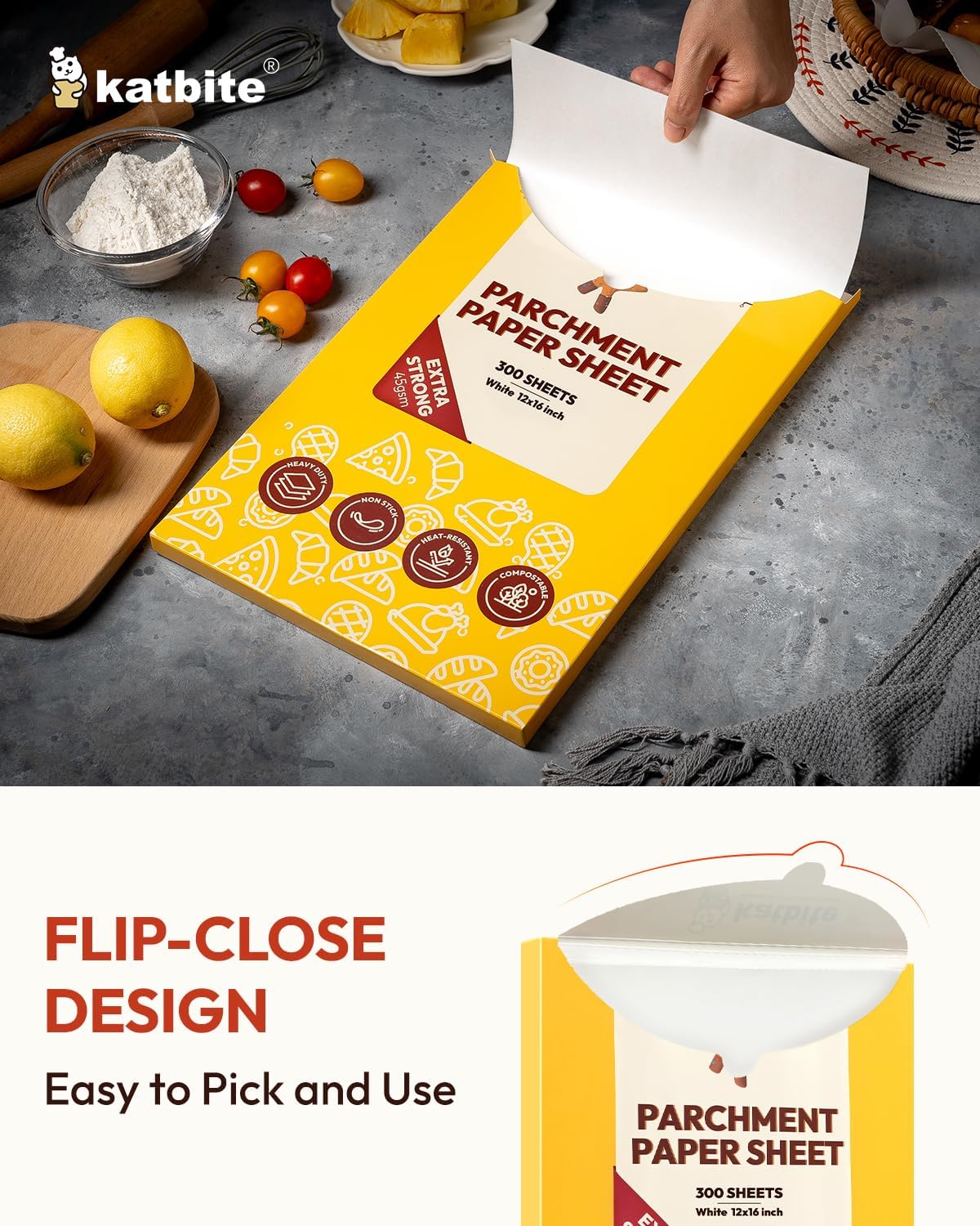 Katbite Parchment Paper, Heavy Duty 12x16 inches Baking Paper, 300 Sheets Oil-proof and Non-stick Parchment Paper Sheets Perfect for Air Fryer, Grilling,Cooking and Wrapping [Advanced Series]