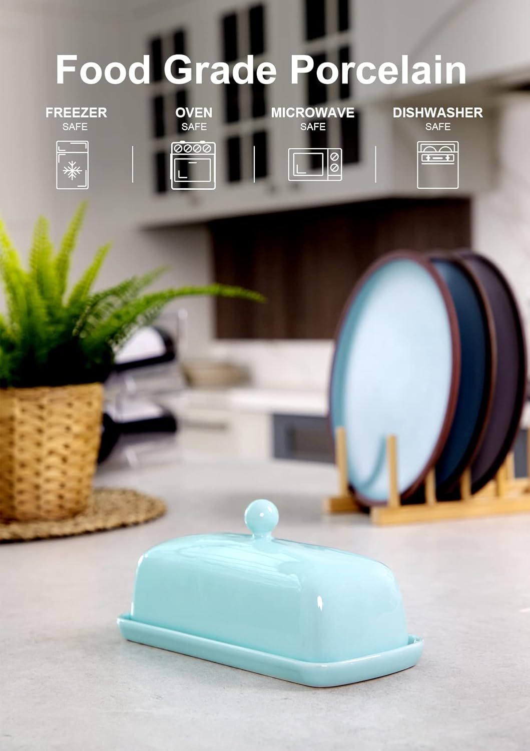 - π° Quality And Safety: The butter dish with lid is made of food-grade porcelain that is non-toxic and free from lead and BPA. (Note: Diswasher, Microwaveable, Fefrigerator And Freezer Safe)