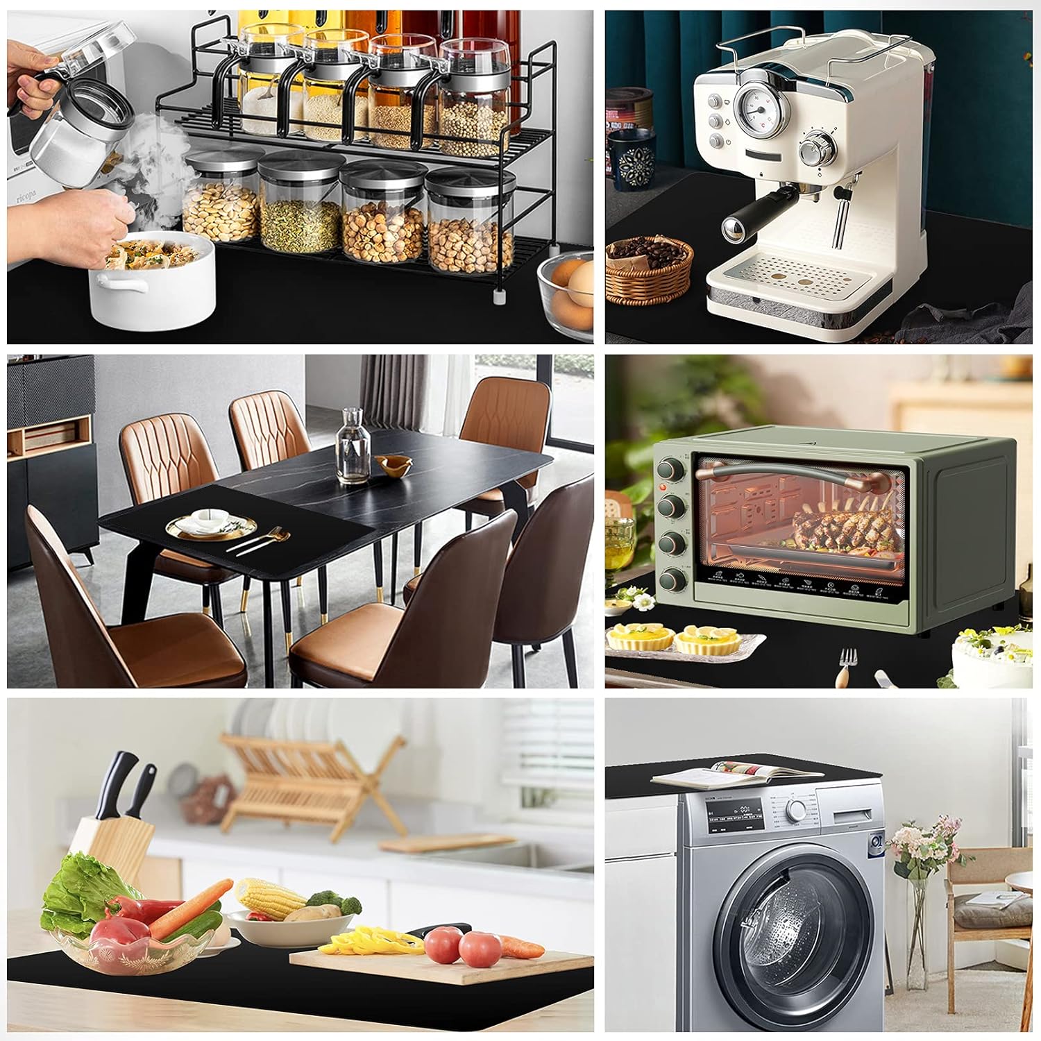 - You Canβt Go Wrong with It: This placemat can solve multiple problems. Great for catching messes. Protect counters from spills, scratches, grease, coffee stains, or damage. Place hot items of all sizes directly on the mat without having to dig through the drawer for a hot pad and no more need for trivets. Reduce the noises made by appliances. No need to worry about items slipping off the countertop. Tools will keep in place. Even if you are rolling dough hard on it, the mat won't slide