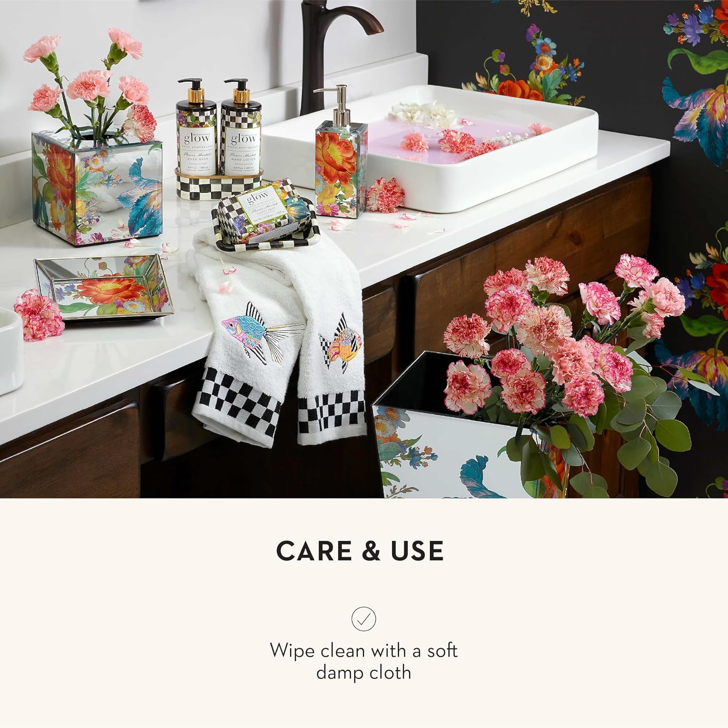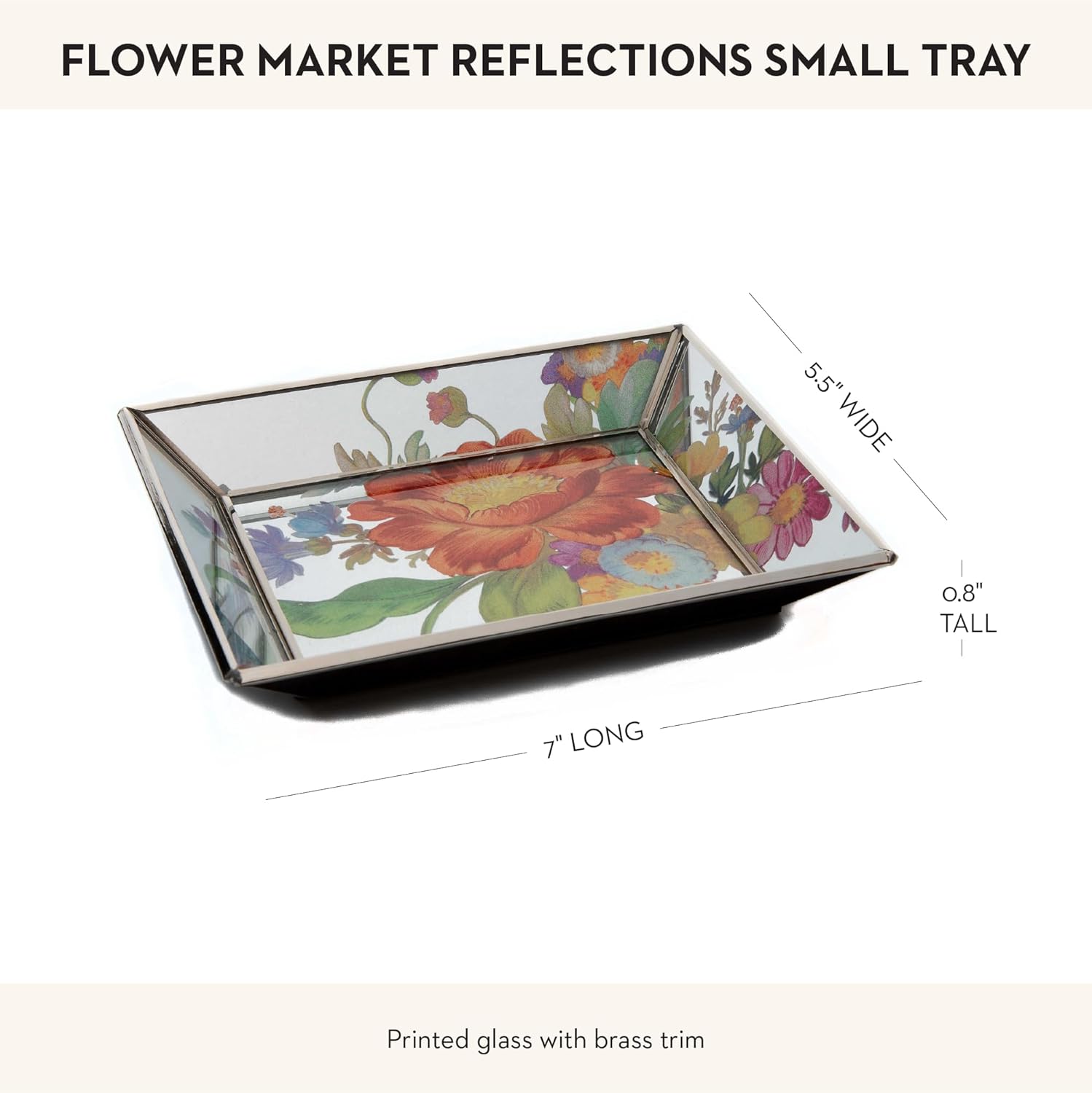 - ELEGANT ROOM ESSENTIALS: This bathroom tray and jewelry dish brings elegant style to your sink countertop and has a Flower Market Reflections design. It features a floral motif that’s printed under glass for a look that will bloom year-round.