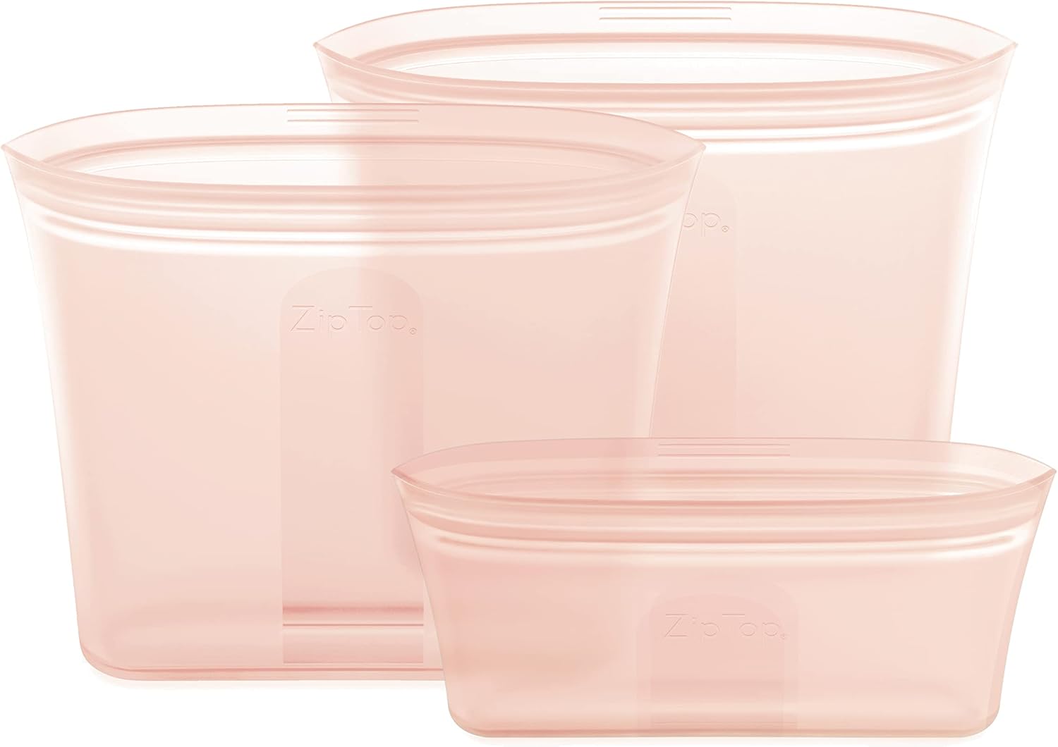 - DESIGNED FOR EASY USE AND CLEANING: Single-piece construction with no glue or plastic sliders, Zip Top is the most durable and easy-to-use reusable container. The tops stay open and zippers do not overlap in the corners like normal zippers making it super easy to clean. Thick strong silicone will not tear or break keeping food fresh. No more lids!