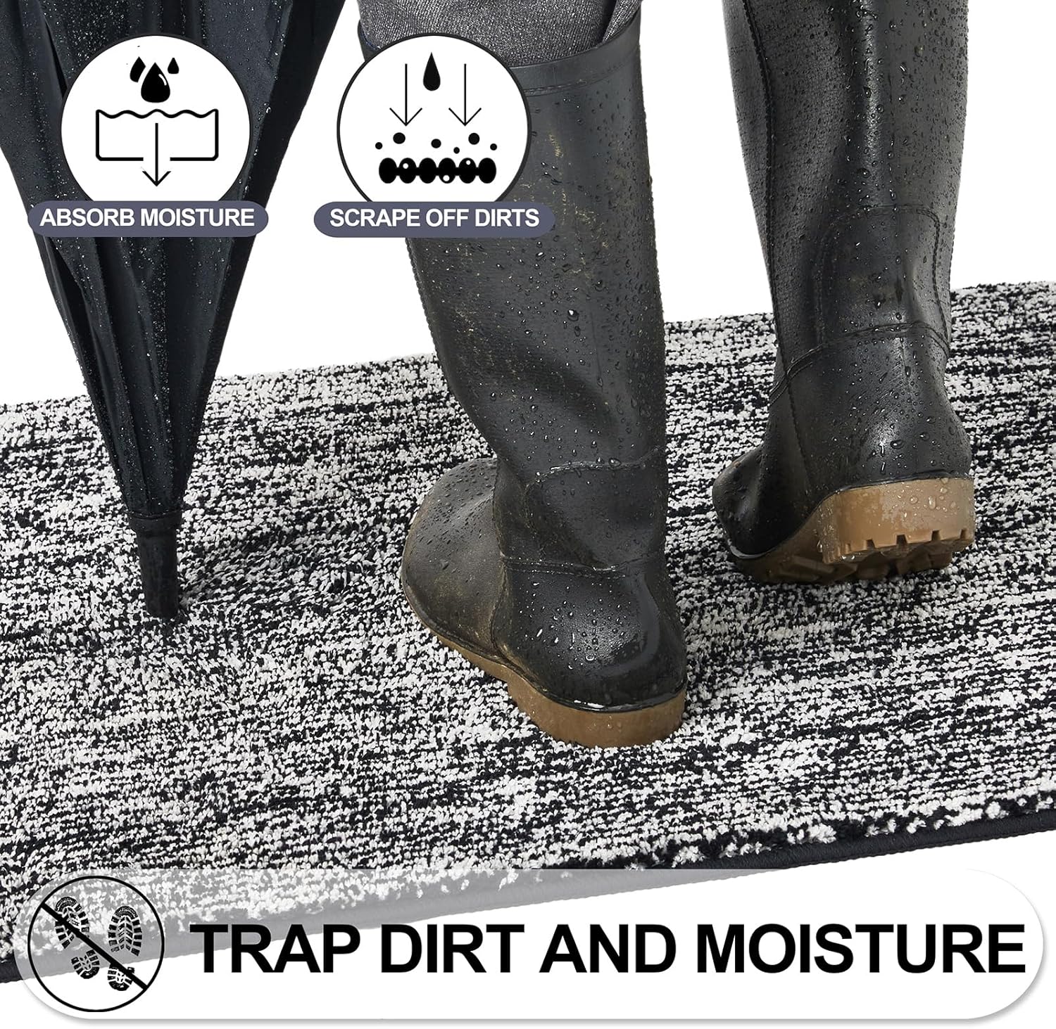 - 【TRAP DIRT & ABSORB MOISTURE】Eliminates dirty and wet foot prints when you entering the house. REFETONE door mat using double layer technology which helps to scrap off dirt, water, dust, grit, mud, sand, grass, slush, snow and absorb moisture from shoe. Say goodbye to messy floors and keep your indoor environment clean and tidy. Indoor doormat perfect for high-traffic areas and widely used for all seasons, especially for the rainy, snowy, or muddy weather. Enjoy your home every time!