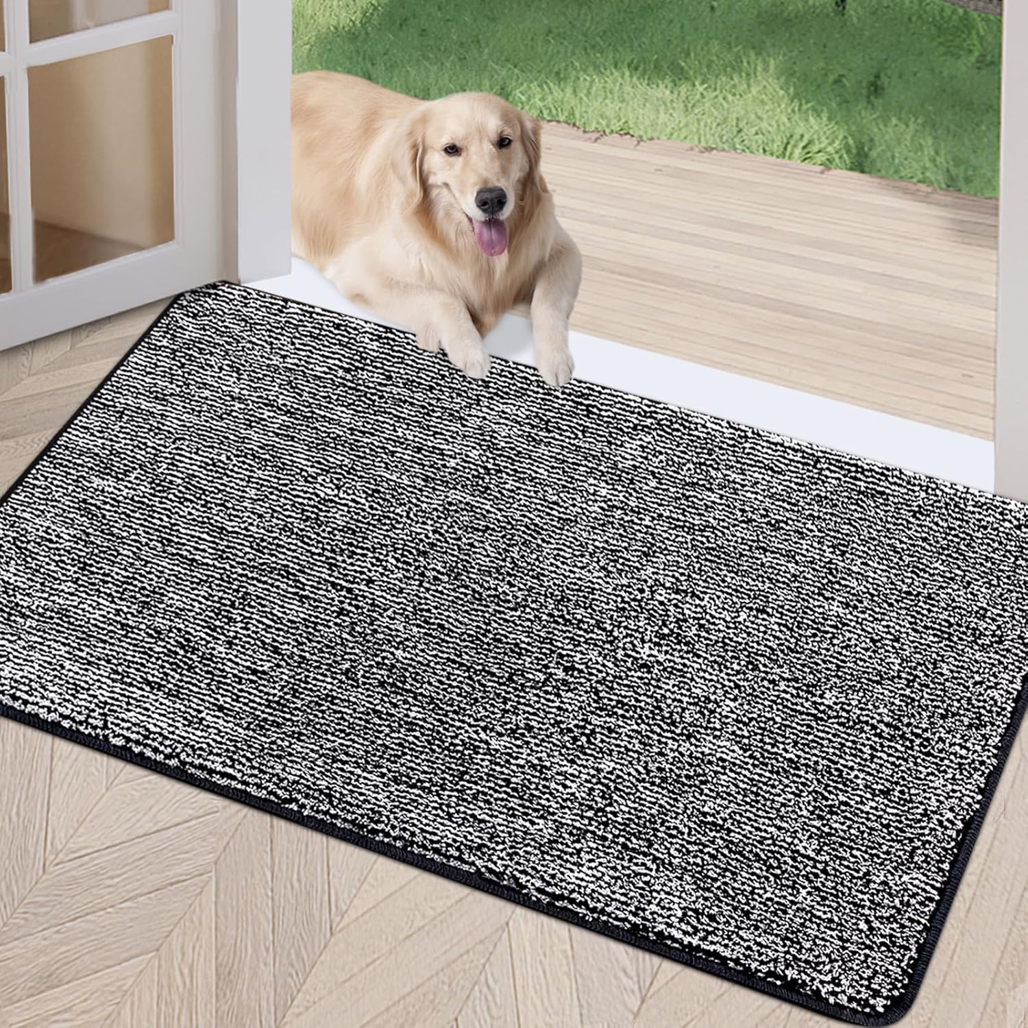 REFETONE Indoor Doormat, Front Door Mat 36"x59" Absorbent Rubber Backing Non Slip Back Door Mats, Washable Low-Profile Inside Floor Mat Door Rugs for Entryway, Resist Dirt Mud Mat for Dogs, Black