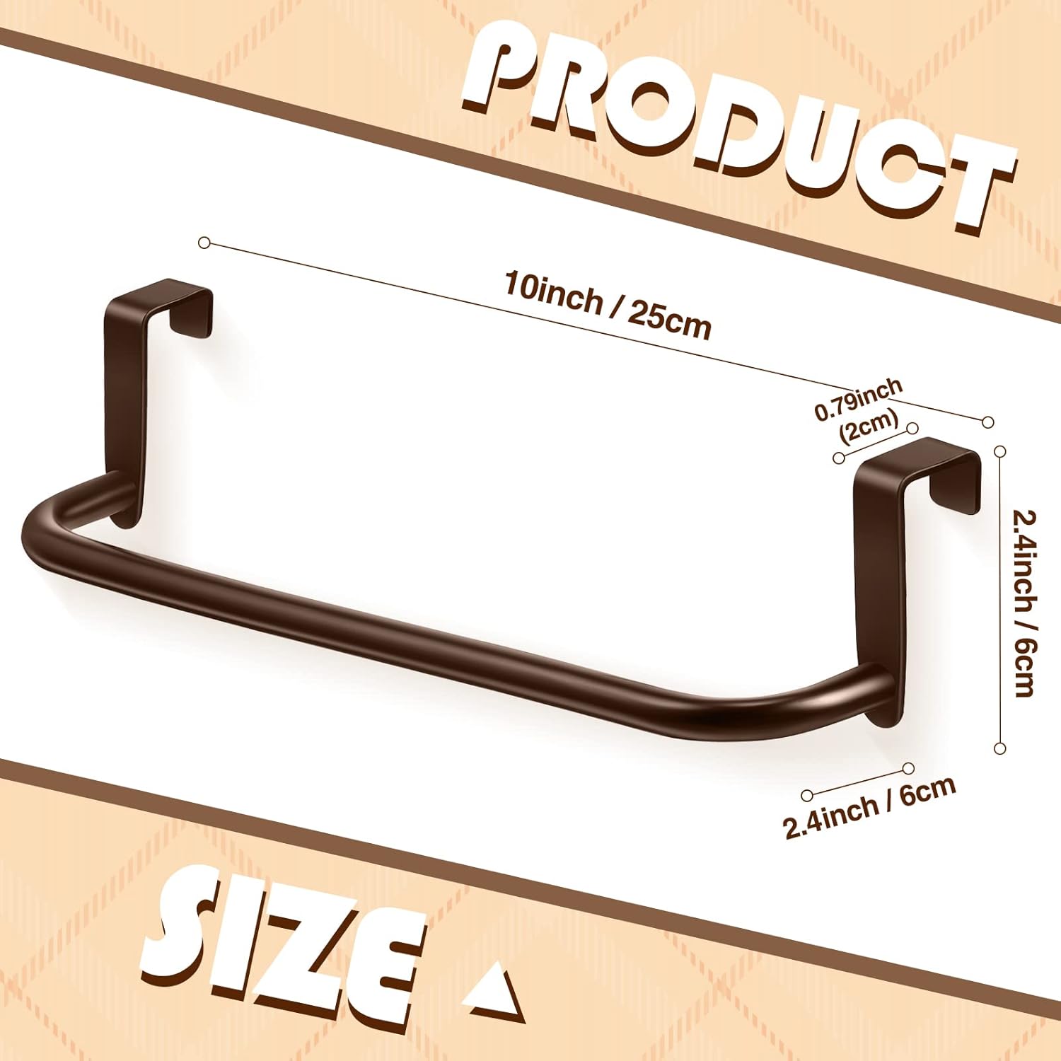 2 Pieces Metal Towel Bar Kitchen Cabinet Steel Towel Rack Bar for Hanging on Inside or Outside of Doors, Home Kitchen Bathroom(Brown)
