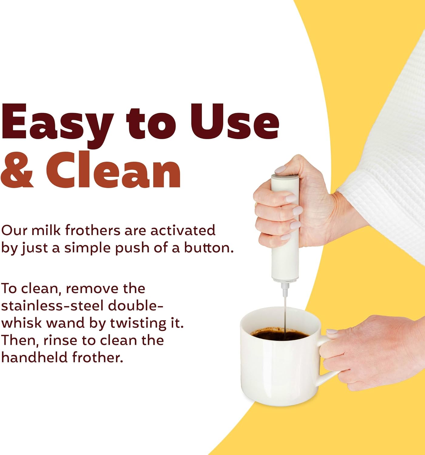 - Make Your Drink Smooth and Creamy - Achieve velvety froth in seconds with the Froth’y Drink Frother, your high-performance alternative to spoons or manual frothers. This automatic handheld coffee whisk creates a rich, creamy texture at the push of a button - perfect for lattes, matcha, cappuccinos, or protein drinks. Customers love the smooth, café-style finish it delivers, turning your daily drink routine into a coffee shop experience at home.