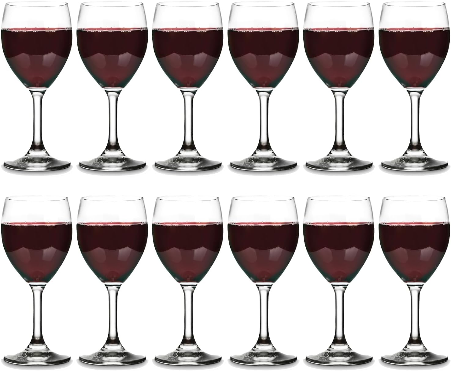 Vikko 8.5 Ounce Glass Wine Glasses Set of 12 - Small Stemmed Glasses for Red and White Wine, Clear, Thick and Durable