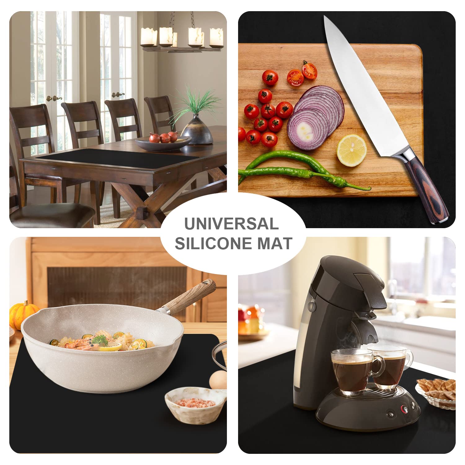 - ✅ FOOD-GRADE SAFE SILICONE MATERIAL: The extra-large silicone mat is made of 100% food-grade silicone, which is BPA-free and can place food directly; safe for family and kids. Dimensions 23.6" x 15.7" (L*W) silicone mats for crafts black. Perfect silicone heat resistant mat for underneath coffee maker or heated appliances like microwave, air fryer, induction stove, toaster oven, etc.