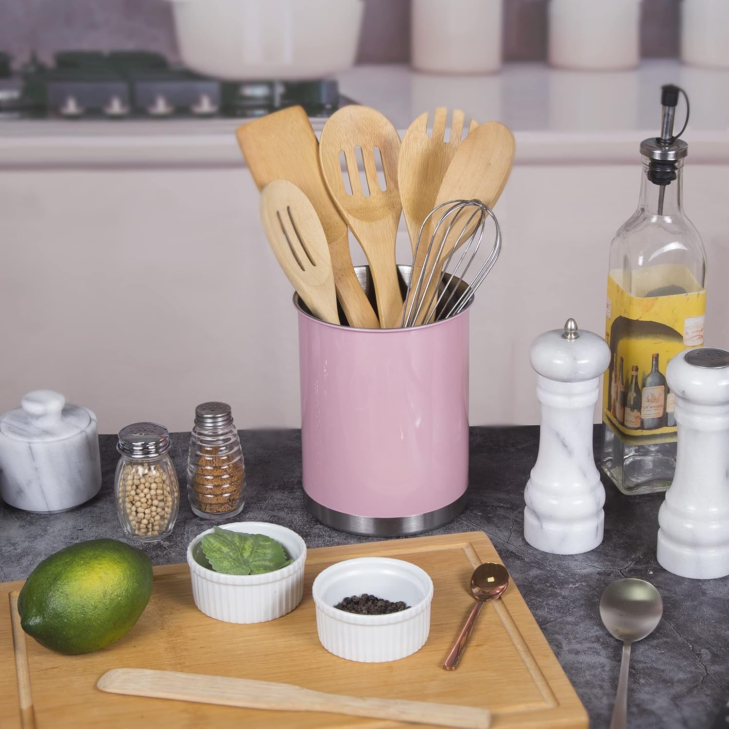 Creative Home Stainless Steel Utensil Holder– 6.3" Large Cooking Tool Organizer for Kitchen Decor and Countertop Storage, Stable Anti-Tip Design, Durable Powder-Coated Finish, Pink