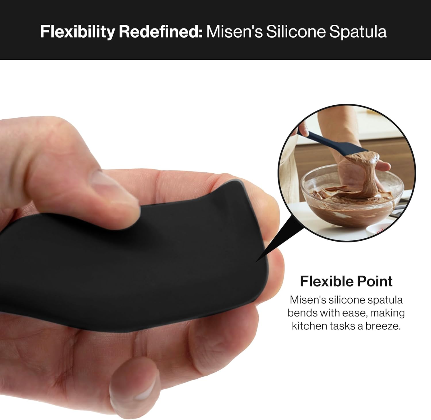 Misen Nonstick-Safe Silicone Spatula - Dishwasher Safe, Heat Resistant - Versatile Professional-Grade Kitchen Tool for Pancakes, Eggs, and Baking - Strong, Flexible, Durable Rubber Utensil - Black