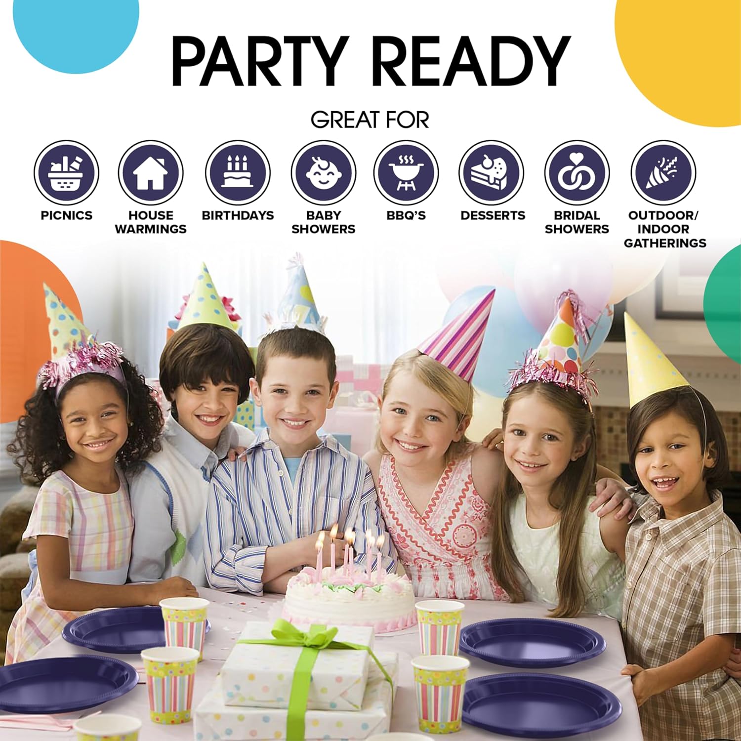 - Includes: Each pack comes with 100 Navy 10 inch dinner plates. These plates may be used as dinner plates or cake plate and also make a great use as picnic supplies. Having these will complete your plastic dinnerware collection.