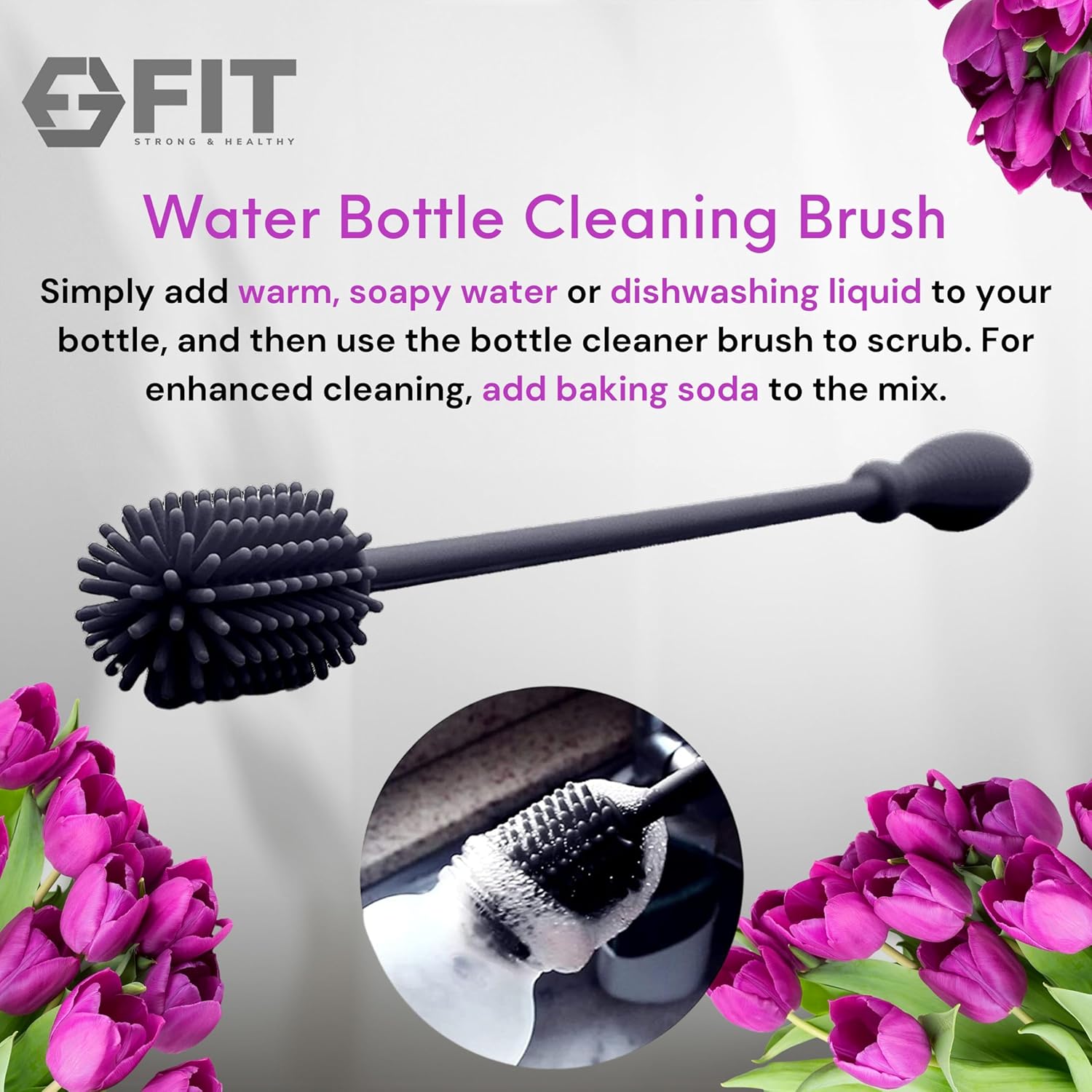 - Water Bottle and Cleaning Brush Set: Upgrade your hydration routine with our 32 oz Glass Water Bottle with Time Marker and Cleaning Brush Set; this version features an extra thick silicone sleeve for extra protection, insulation, and a secure grip; we've also upgraded one of the lids to a straw lid for sipping on the go; the 32-inch Water Bottle Brush is made from durable silicone material, which effectively removes dirt and residue; plus, it does not absorb unpleasant odors and stains