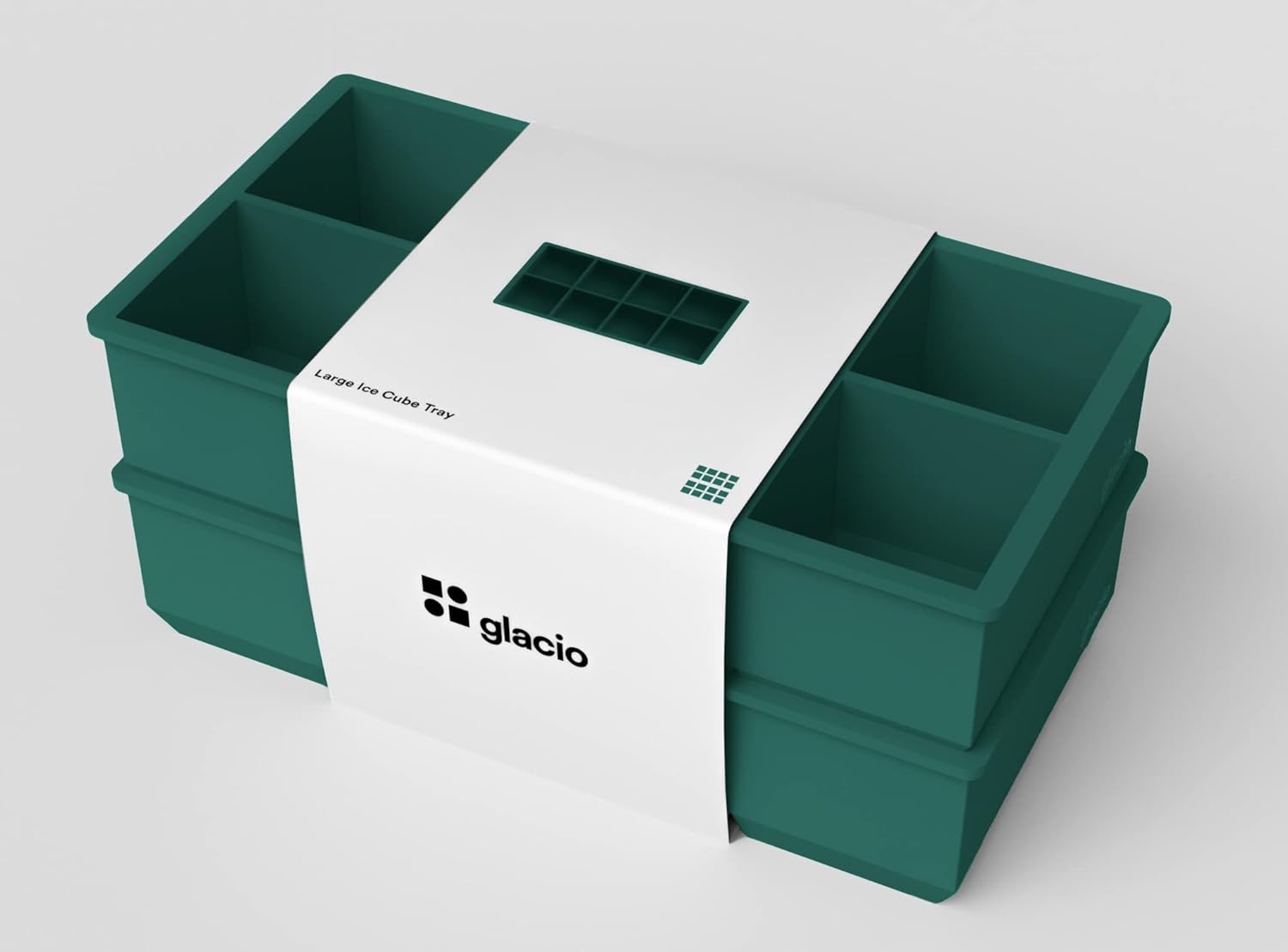 glacio Ice Cube Molds โ 2-Pack Silicone Trays for 8 Large Square Cubes โ Slow-Melt Ice for Whiskey, Cocktails, Coffee & More