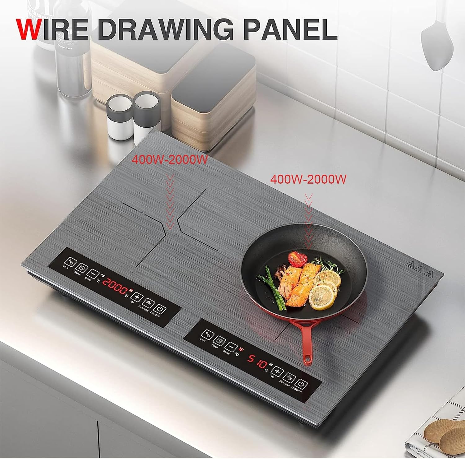 - DUAL HEATING ZONES:The double induction cooktop features two independent heating areas and independent LED display. Each burner is 2000W which can cook 2 dishes quickly at the same time. The electric cooktop uses 110v-120v of electricity standard in all North American homes. The induction burner countertop is lower noise than others and more energy saving.
