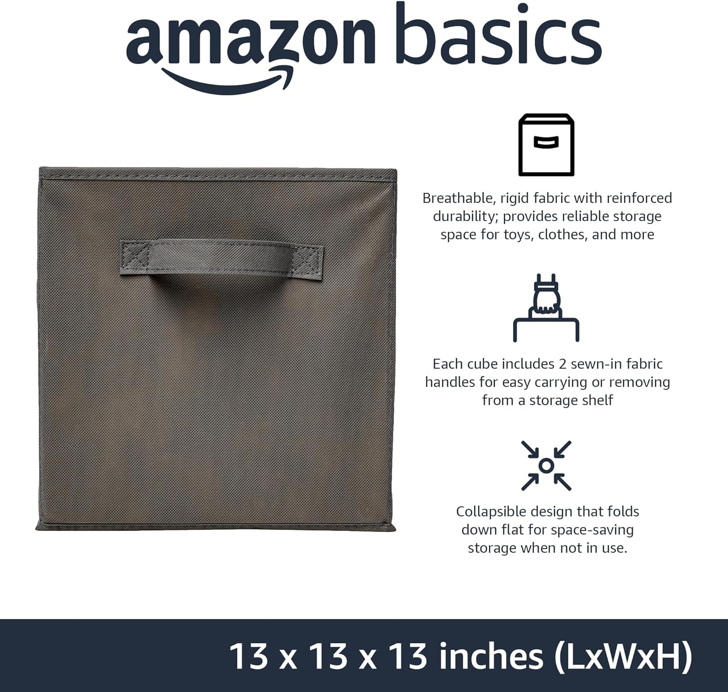 Amazon Basics Collapsible Fabric Storage Cube Bins Organizer with Handles, Sturdy, Gray, 13-x-13-x-13-inch, Pack of 6