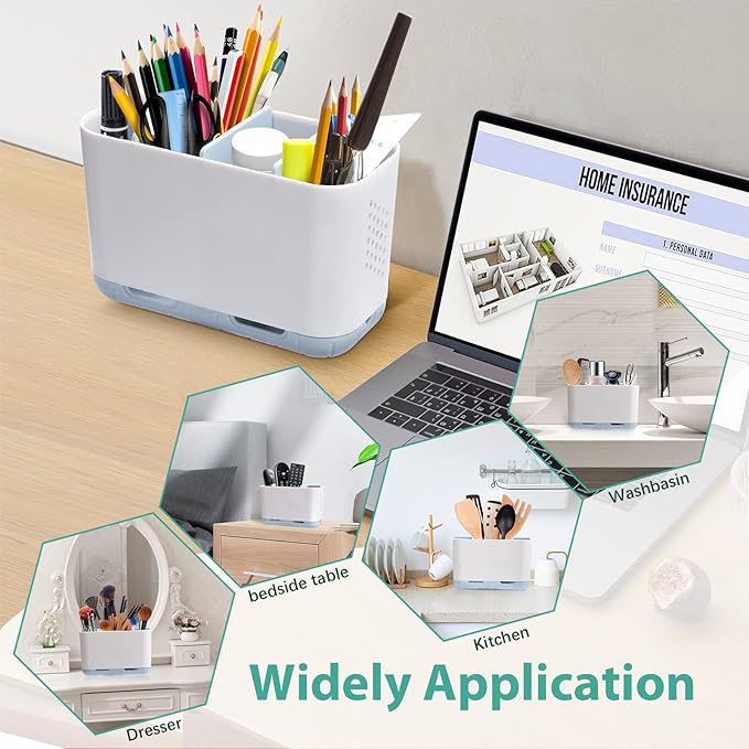 - Multifunctional storage: The electric toothbrushes, razor,comb,dental floss and makeup brush and more can be neatly placed inside this countertop to organizer and storage. Saves space and lets your messy counter of bathroom, venity, kitchen, desk ect. no longer in chaos.