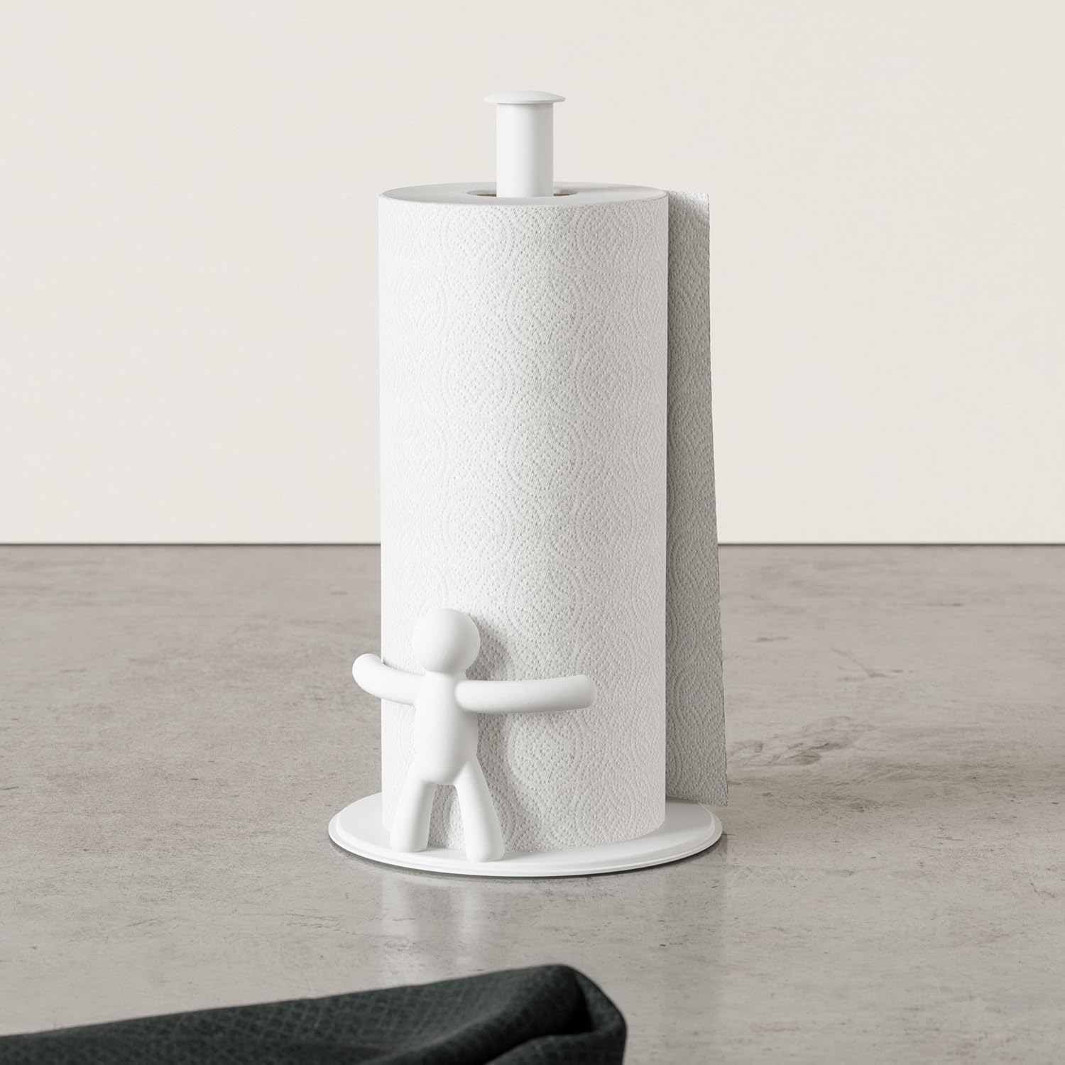 - DURABLE DESIGN: Buddy Paper Towel Holder is made with metal and molded soft-tough polypropylene, giving it a sturdy yet light-weight design