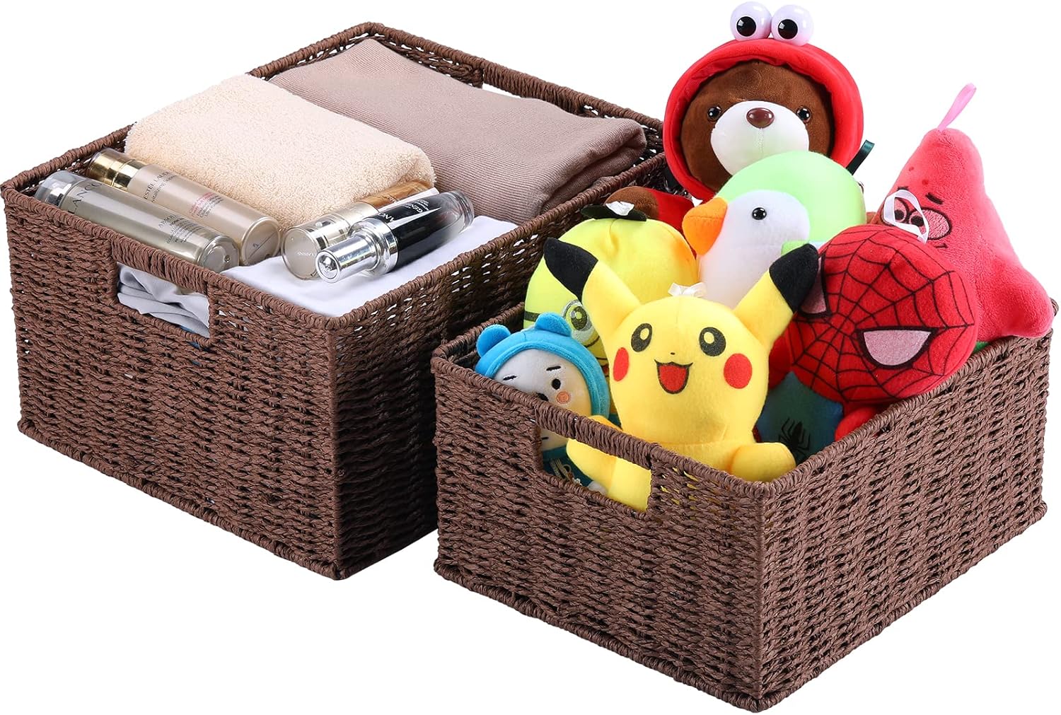 - Decorative and Versatile: Elegant and simple rectangular design in dark brown color to complement or match the home decor, clean up and organize your home with these rustic decorative baskets.