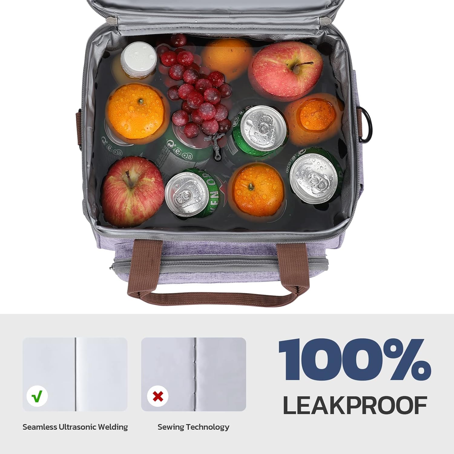 Maelstrom Lunch Bag Women,23L Insulated Lunch Box For Men Women,Expandable Double Deck Lunch Cooler Bag,Lightweight Leakproof Lunch Tote Bag With Side Tissue Pocket,Purple