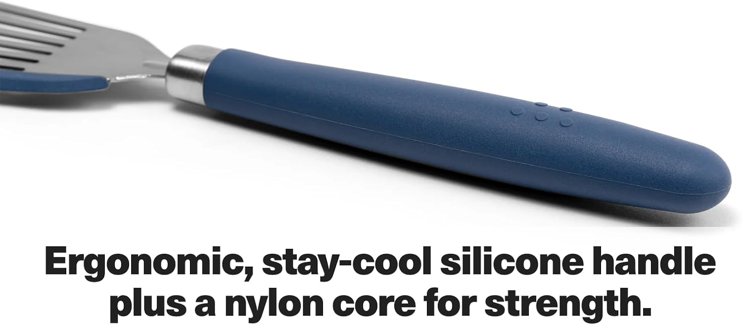 - DYNAMIC SILICONE GRIP: Equipped with a heat-resistant silicone grip handle, this spatula ensures a secure and comfortable hold. The silicone handle provides optimal control, making it an indispensable tool for any chef or cooking enthusiast.