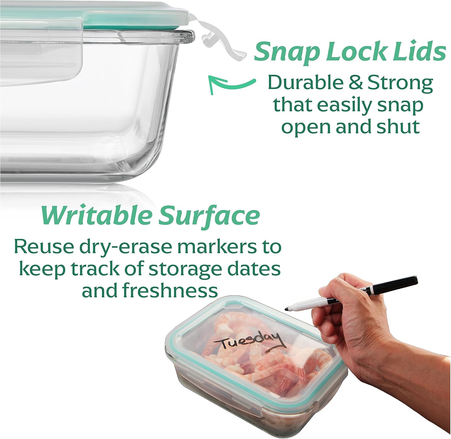 - DURABLE SNAP LOCK LIDS: Strong, Airtight & Leak proof tested to prevent nasty spills. Plus, we made them easier to latch & open and stronger to prevent melting or warping; 100% BPA-Free