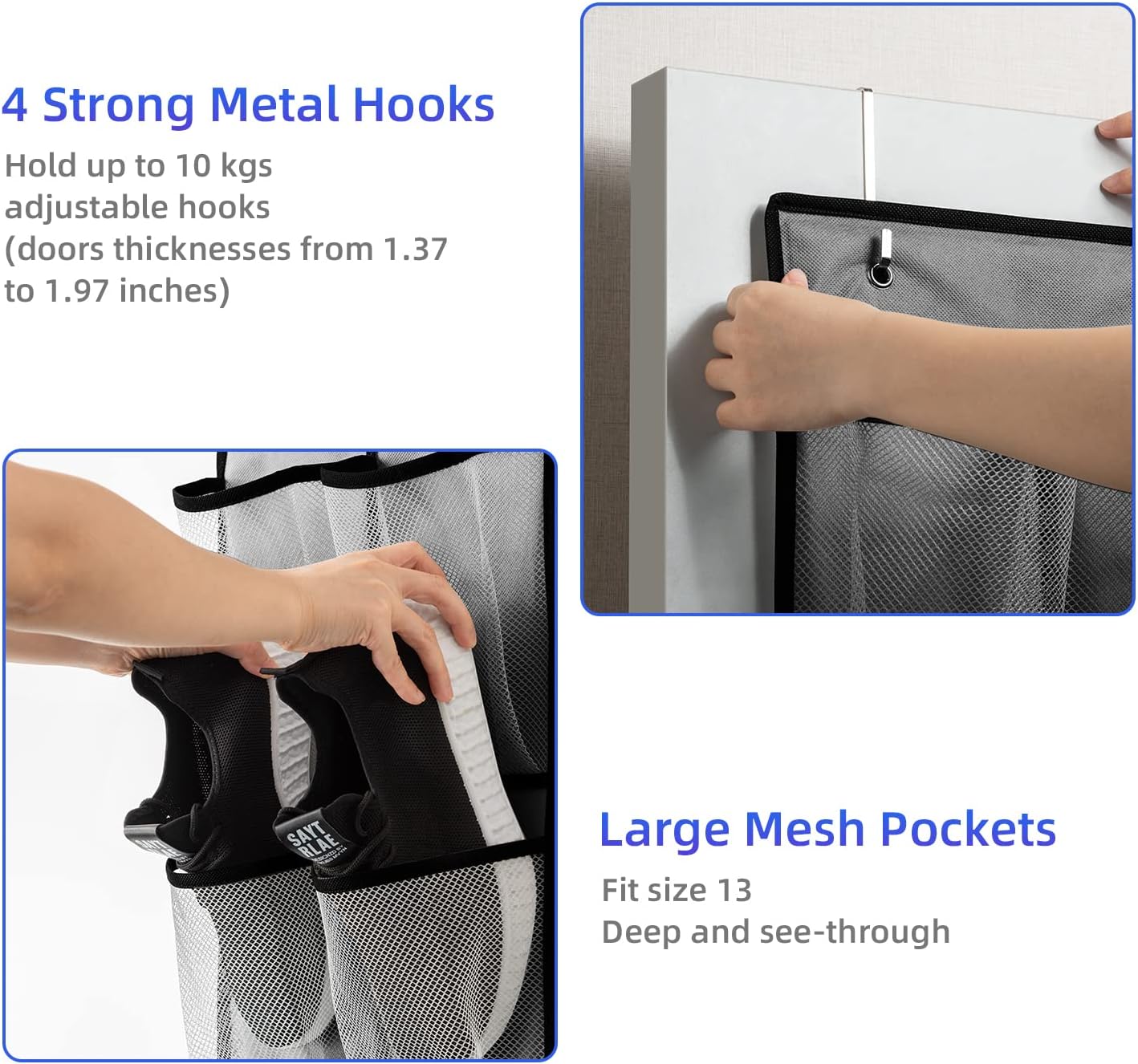 KEEPJOY Over the Door Shoe Organizer, Hanging Shoe Organizer with 4 Hooks,Door Shoe Holder with 14 Mesh Deep Pockets Closet Door Shoe Storage Bag (Grey-2Pack)