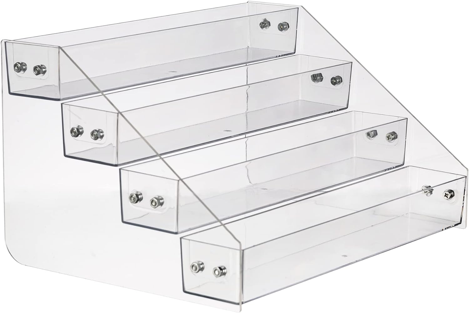 Acrylic Spice Rack, Tiered Spice Rack Shelf Seasoning Organizer for Countertop, Cabinet, Pantry, Kitchen Storage - 4 Tier