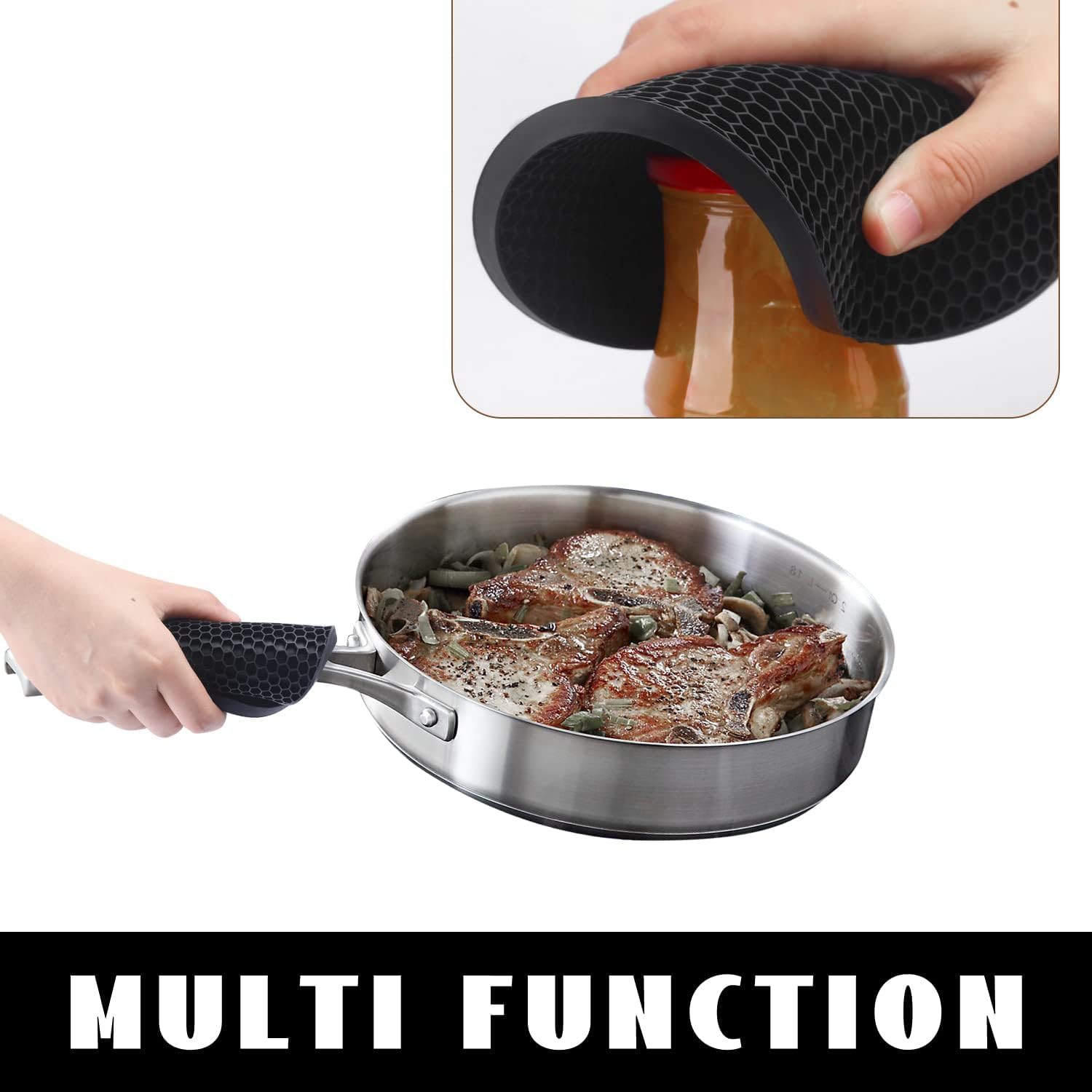 - 🎯HONEYCOMB DESIGN - Inspired by natural honeycomb graphics, our round black hot pads pot holders have the same shapes; the honeycomb pattern creates a multipurpose anti-slip surface that catches spilled liquids, keeping the desktop clean and tidy.
