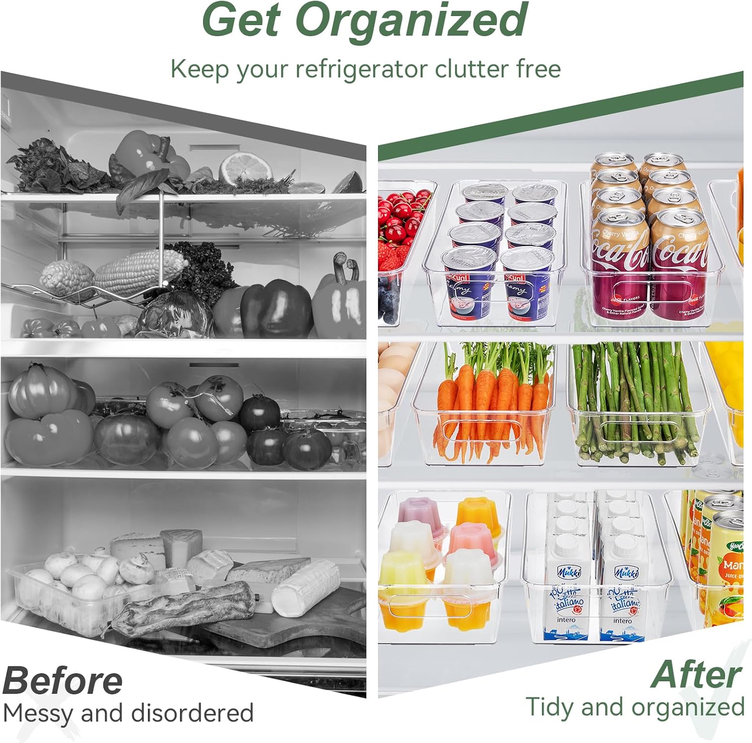 - CLEAR VIEW DESIGN: The clear design of these fridge storage bins allows for an unobstructed view, making it easy to locate stored items quickly. They are stackable, optimizing space when not in use