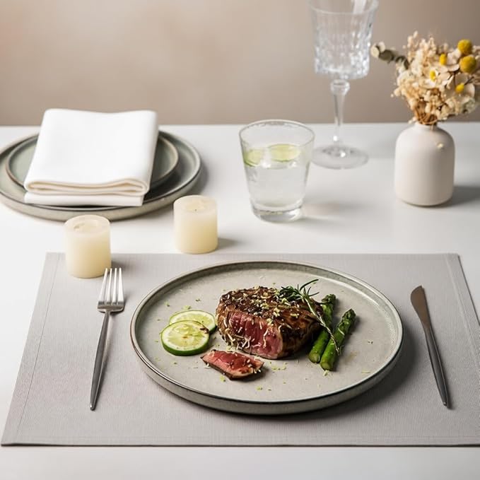 - DURABILITY EAT SAFTY:The plates are made of pro-grade material, and the glaze is all-natural. After 2340℉ high temperature firing for 13 hours, the plates are lead-free, cadmium free, meaning you will never have to worry about any health problem.The glaze is also extra strong to prevent scratches from your knives and forks.