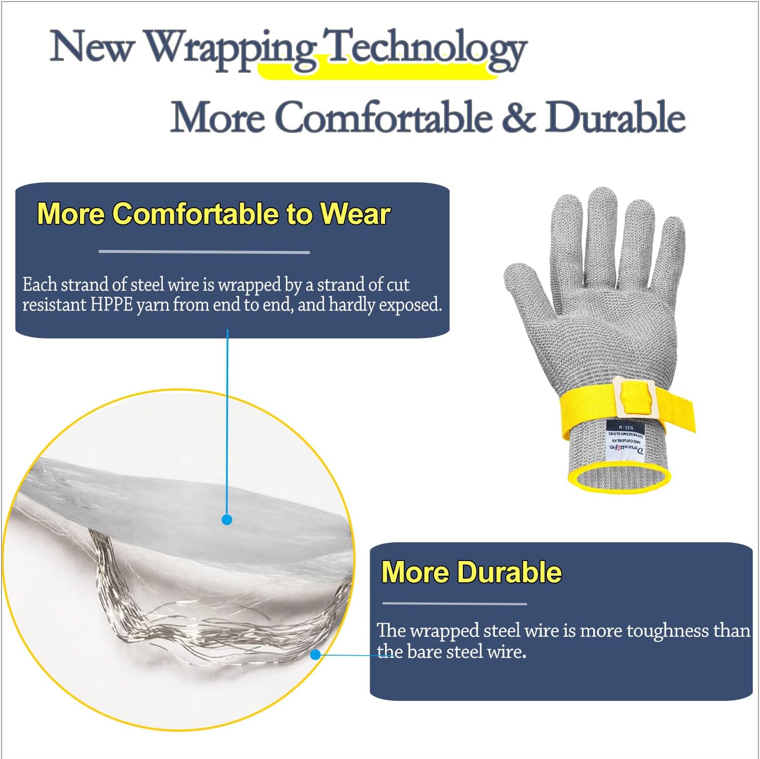 Dowellife Comfortable Level 9 Cut Resistant Glove Food Grade, Mesh Metal Kithcen Glove for Chef Oyster Shucking Mandoline Knife Butcher Meat Cutting