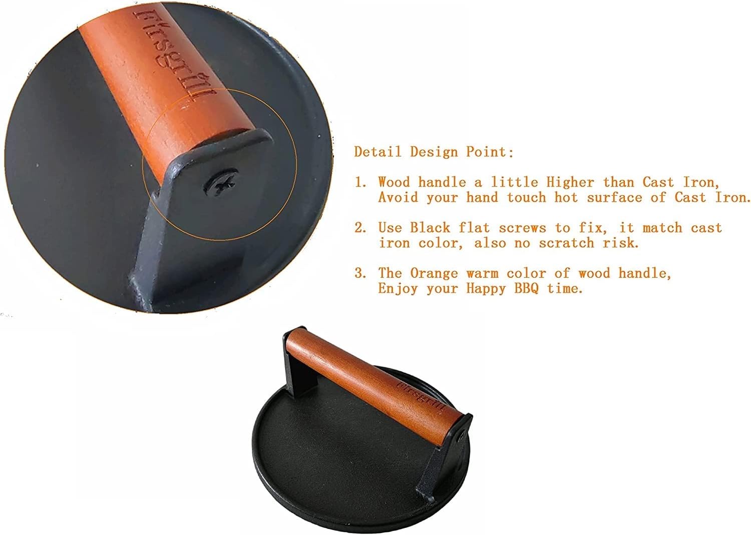 - 【LESS TIME COOKING, MORE TIME EATING】: Got people coming over, and want perfect, consistent bacon, quick? The Firsgrill signature iron grill press is 7.08-inch and presses down on your favorite thin meats to make them cook faster and more evenly.