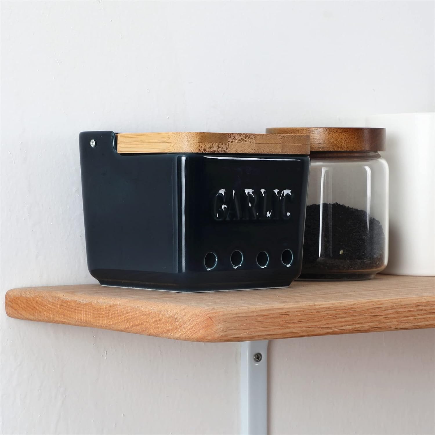 - FASHIONABLE APPEARANCE : There are 4 holes on the porcelain, which can keep the garlic ventilated inside